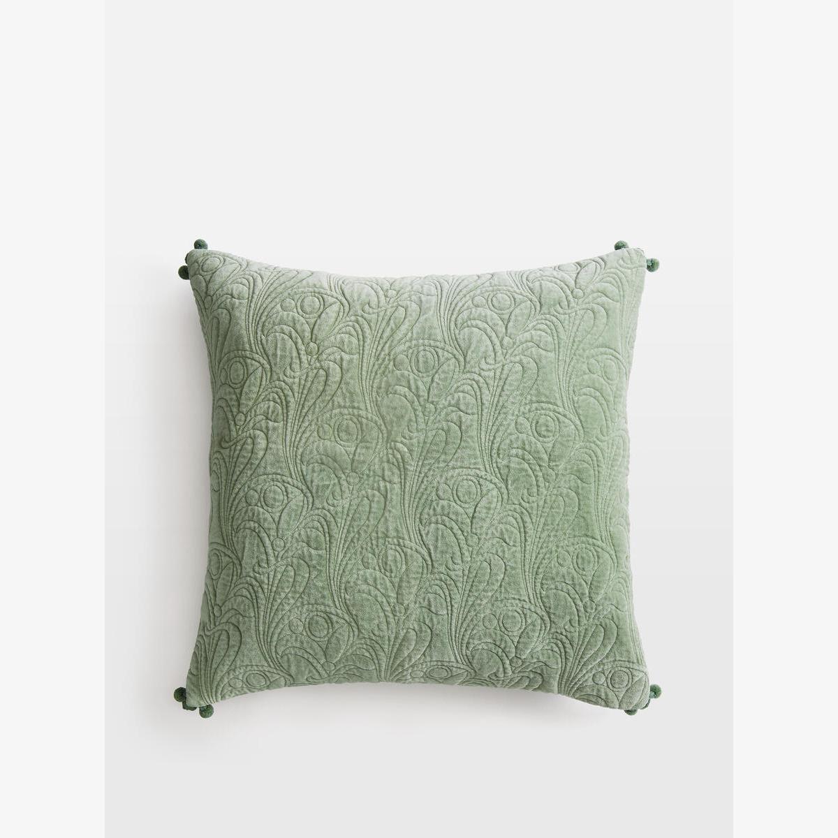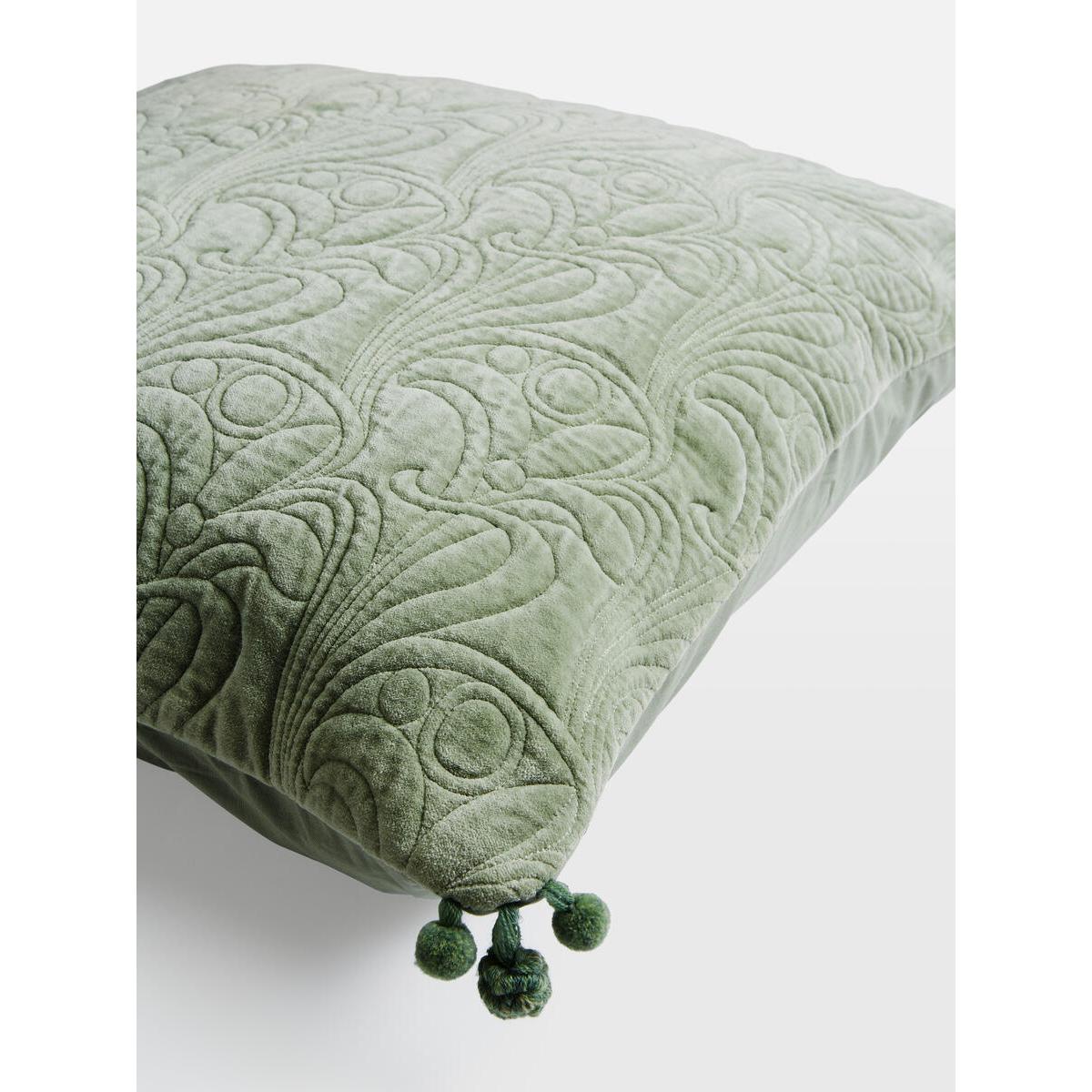 Originally hand-painted by our in-house design team using watercolours, our Obie square pillowcase is made from a quilted cotton velvet and features abstract floral motifs inspired by Art Nouveau. Created using a matelasse stitching technique, it's finished with a pompom trim - a textural and decorative addition that recalls the sumptuous textures in Soho House Rome. 100% cotton velvet Large square quilted pillowcase Pompom trims in corners Matelasse technique Design inspired by Art Nouveau florals Available in three colours and sizes Inspired by Soho House Rome