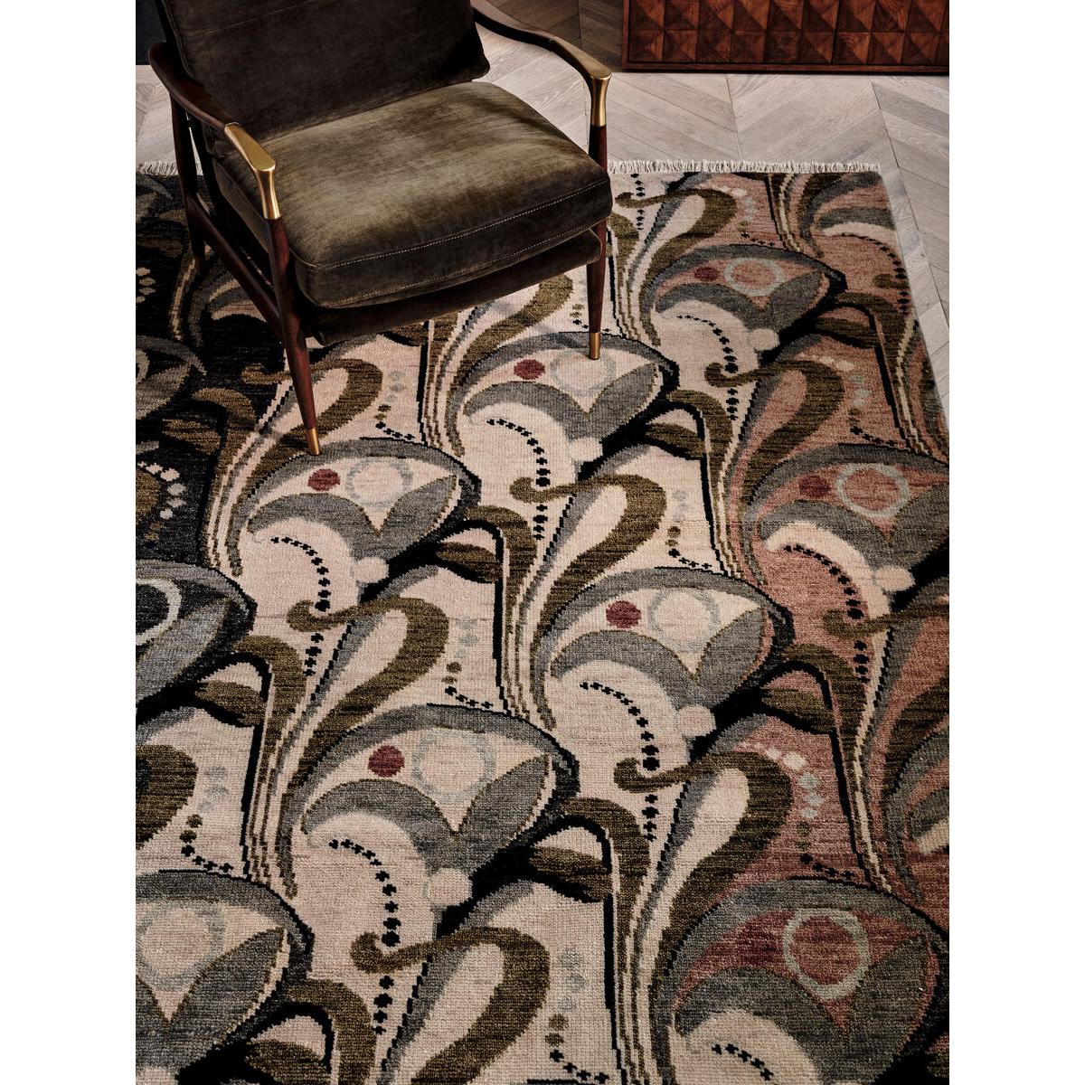Originally hand-painted by our in-house design team using watercolours, our Obie rug has been hand-knotted with wool and features abstract floral motifs inspired by Art Nouveau. Place it in a bedroom or living area to reference the calming tones of Soho House Rome. Wool pile rug Hand-knotted in India Originally hand-painted in-house Inspired by Art Nouveau design Inspired by Soho House Rome