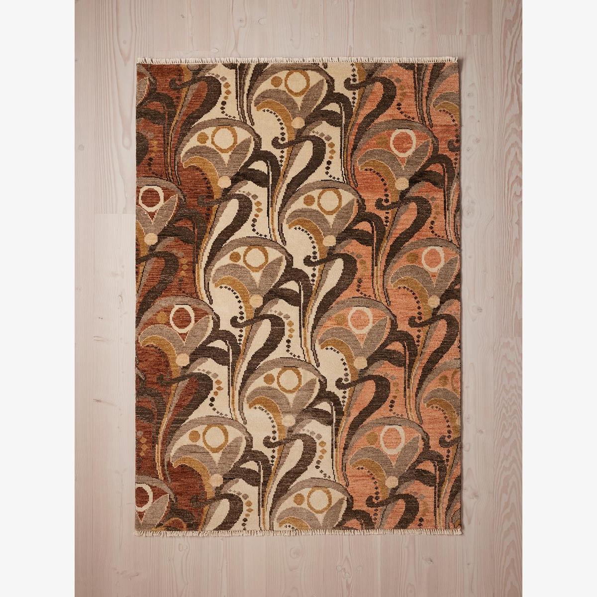 The Obie wool rug showcases abstract florals originally hand-painted by our in-house design team using watercolours. Inspired by Soho House Rome, this decorative rug has been hand-knotted in India by a community of skilled artisans in a tonal rust palette.
