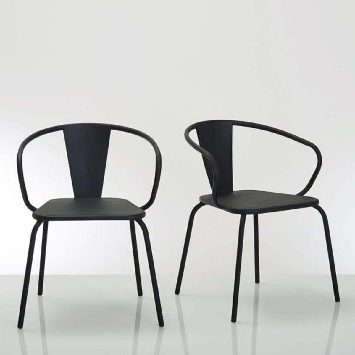 Set of 2 Oblice metal garden chairs. Welcoming and comfortable, these armchairs can be stacked for easy storage.