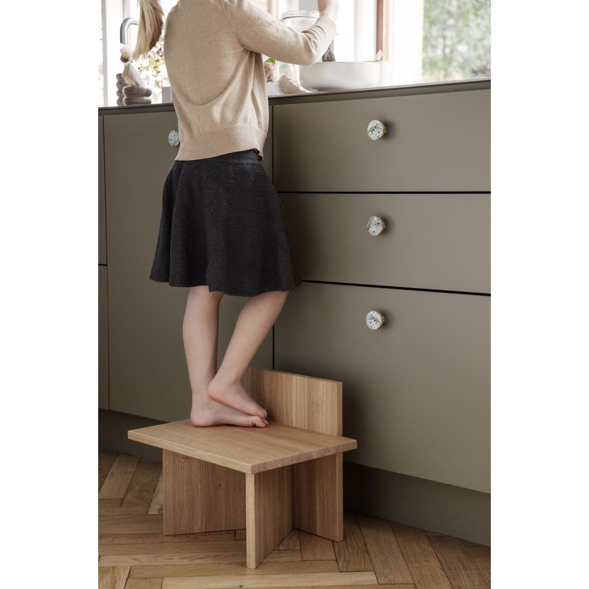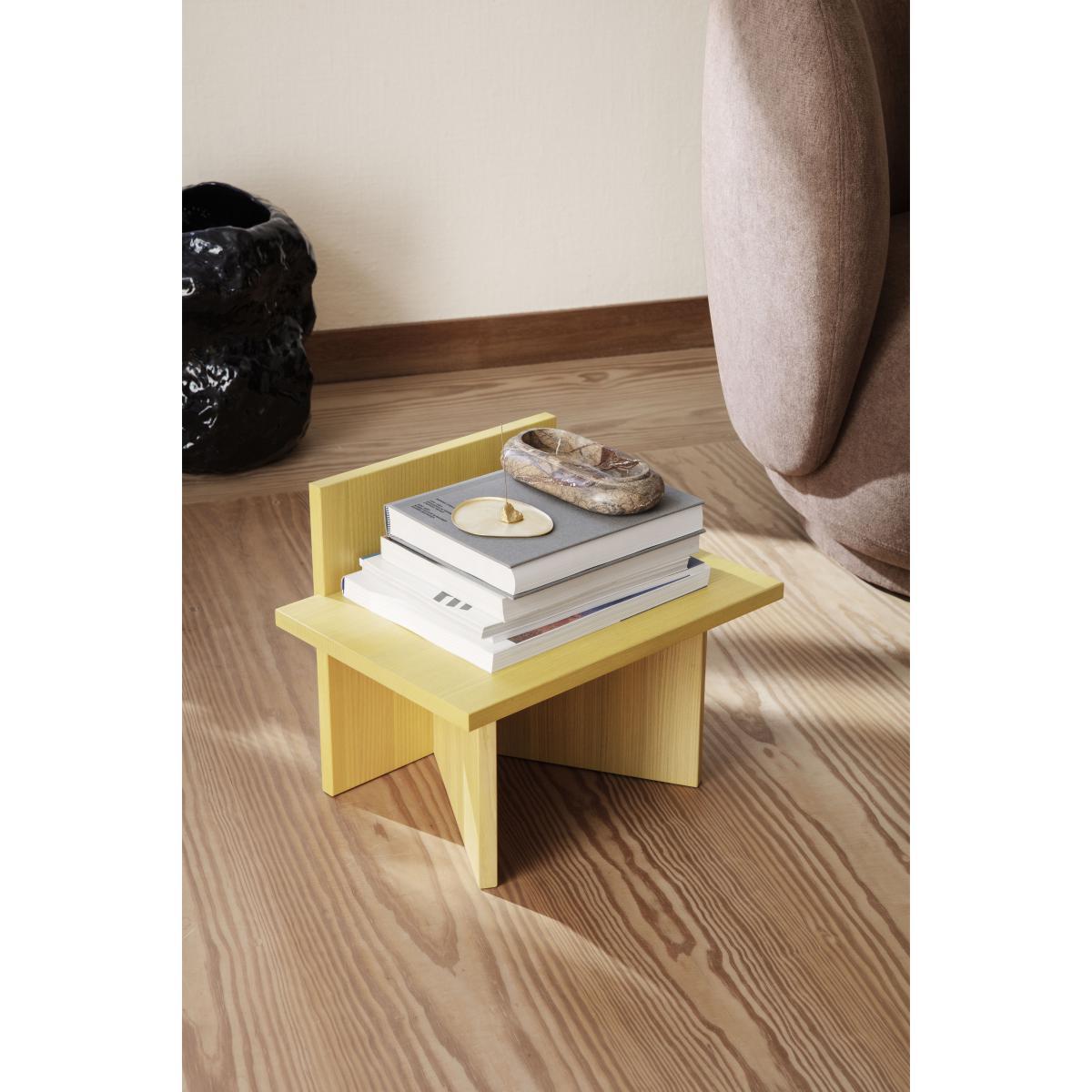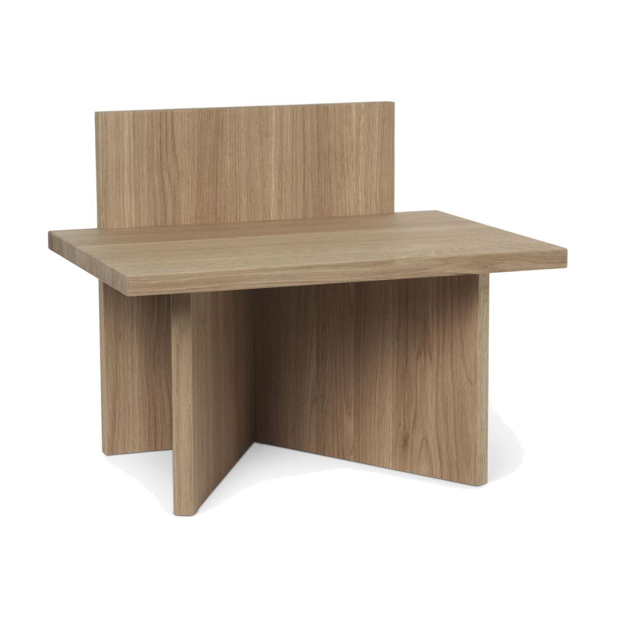 Functionalist geometry. The Oblique stool fuses traditional Japanese woodworking techniques with the sensitivity of Scandinavian design. Sculptural and minimalist, this stool has clean, zen lines. It consists of a geometric assembly of thick solid oak planks. The oblique feet and large panel forming the backrest create pure, honest lines, precise and yet slightly offset. The pure lines, refinement and noble materials are characteristic of the Japanese art of living and its conspicuous refinement. Oblique can be used as a stool, side table or bedside table.