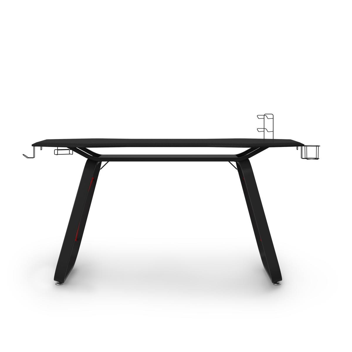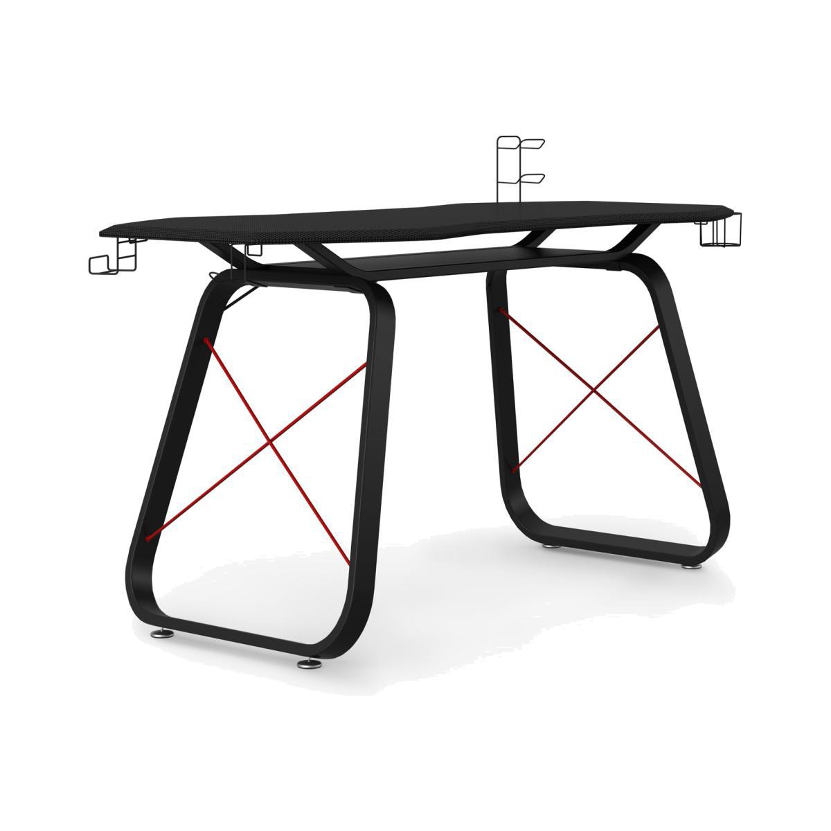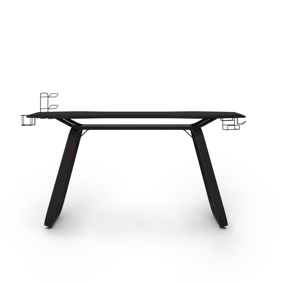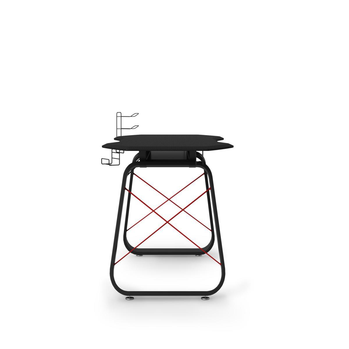 Take your gaming to the next level with the Oblivion desk, the ultimate set up designed by gamers, for gamers. The sleek black steel frame is perfectly complemented by the red cross beams, all supporting a large carbon fibre effect desktop perfectly shaped for both gaming and every day use. This modern desk also comes with interchangeable storage add-ons, including a headphone hanger, server rack, drinks holder and storage for two controllers, so it's easy to keep your station organised.