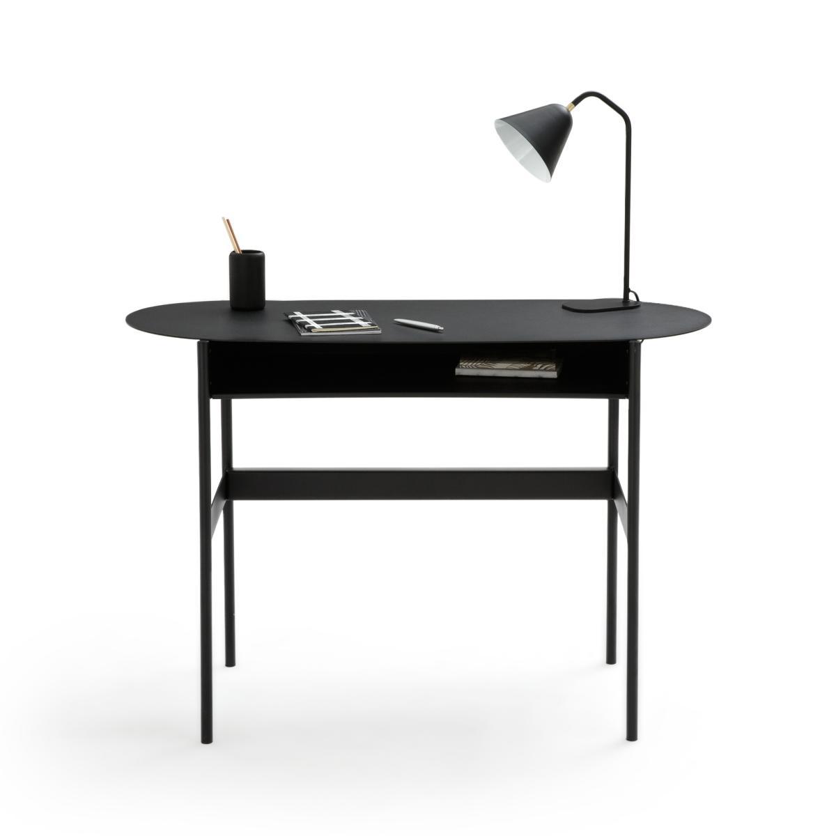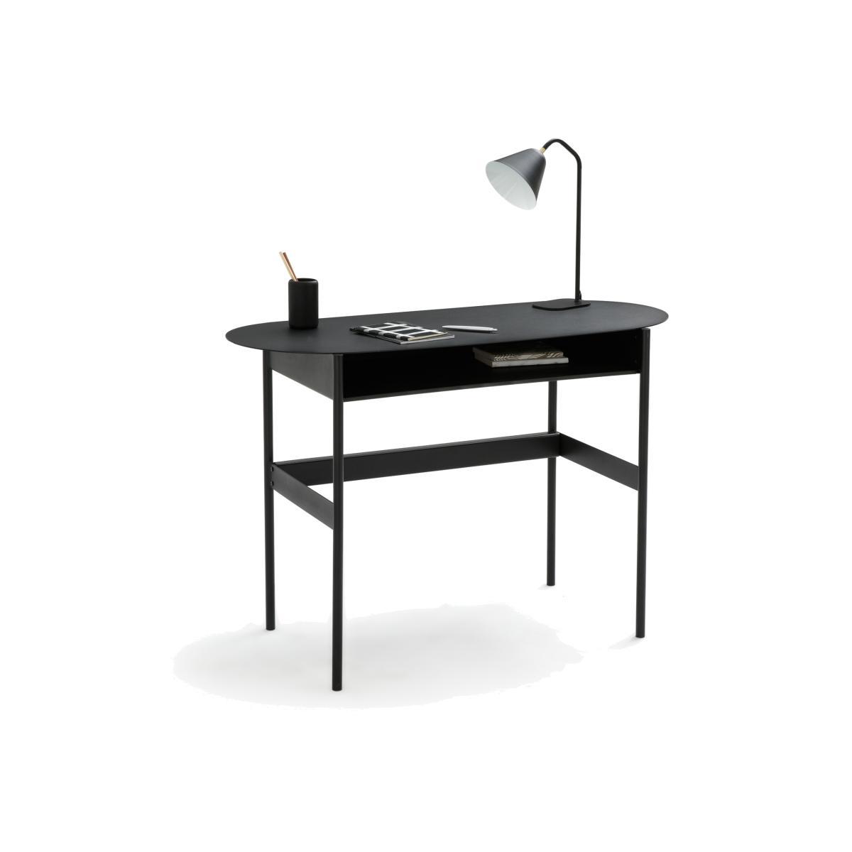 I love this slimline black console desk for its sleek, minimalist aesthetic and versatile functionality. It works particularly well in contemporary or industrial interiors, adding a touch of modern elegance without overwhelming the space. Practical styling tips include pairing it with streamlined accessories like monochrome organisers or a simple desk lamp, as seen here, to keep the look sharp and uncluttered. It also makes an excellent entryway table or a compact workspace corner in a living room or study. To add a bit of personality, consider layering with textured baskets or decorative trays underneath for a neat, personalised finish.
