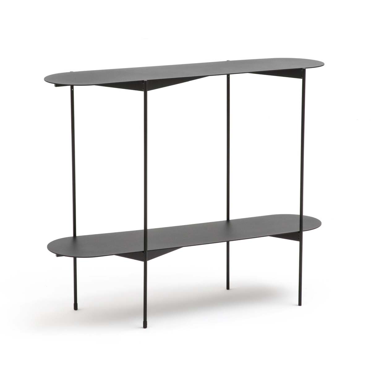 I love this console because of its sleek, minimalist design and the versatile metal construction that can complement both modern and industrial interiors. It works particularly well in entryways, living rooms, or even as a sideboard behind a sofa. Practical styling tips include layering with decorative books, plants, or minimal artwork to add personality without clutter. Its slim profile makes it ideal for narrow spaces, and the open shelving encourages a light, airy feel. Overall, this piece is both functional and stylish, giving interior spaces a contemporary edge.