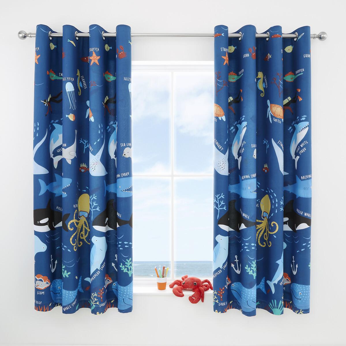 Catherine Lansfield is renowned for style and quality - designed and developed in Great Britain. Explore the depths of the deep blue sea with your underwater friends. This design features a range of cartoon like sea life including; orca whales, hammerhead sharks, octopuses and turtles. This educational duvet set, paired with a fish print lining will make bedtime super fun. These curtains are fully lined and finished with a ring top header that is suitable for curtain poles. Made from 52% Polyester 48% Cotton. Dry Clean Only. This product will be dispatched by one of our trusted suppliers. You’ll be contacted by their selected courier about your delivery.