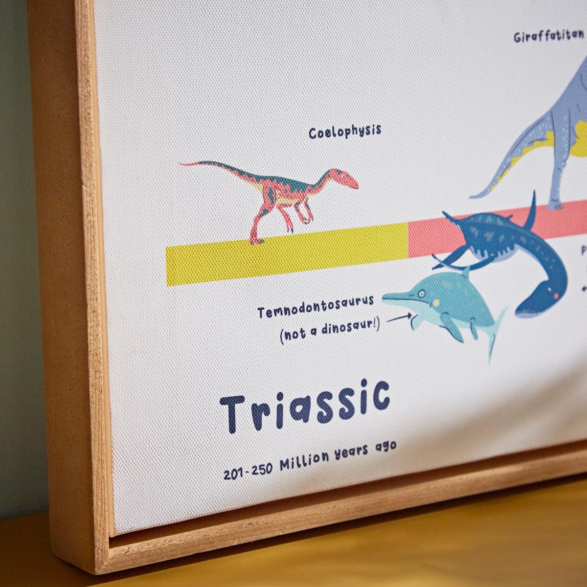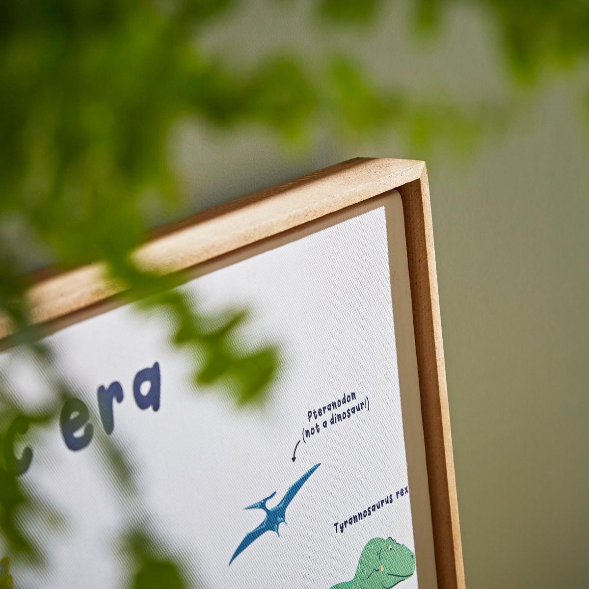 In collaboration with the Natural History Museum. Featuring an array of prehistoric creatures, this fun canvas showcases the Mesozoic Era’s three time periods: the Triassic, Jurassic and Cretaceous. During this time the land gradually split from one huge continent into smaller ones. Changes in climate and the introduction of new plant life meant that dinosaurs and other reptiles evolved and became more diverse. Where did your favourites live? Was it the ocean, the land, or the sky? The canvas is bordered by a frame made from responsibly sourced, FSC-certified timber. By choosing this product, you are supporting responsible management of the world’s forests. Dunelm x Natural History Museum. The Ocean to Sky Framed Canvas has been designed with kids in mind. We’ve come together to create some extra special designs inspired by the Museum and its enormous, astonishing and mind-blowing dinosaur and oceanic collections! We’re on a mission to celebrate the wonder of nature so every piece in this collection has been designed to utilise our resources in the best possible way, to be respectful of the natural world and help to protect its future. © The Trustees of the Natural History Museum, London 2022. All Rights Reserved.