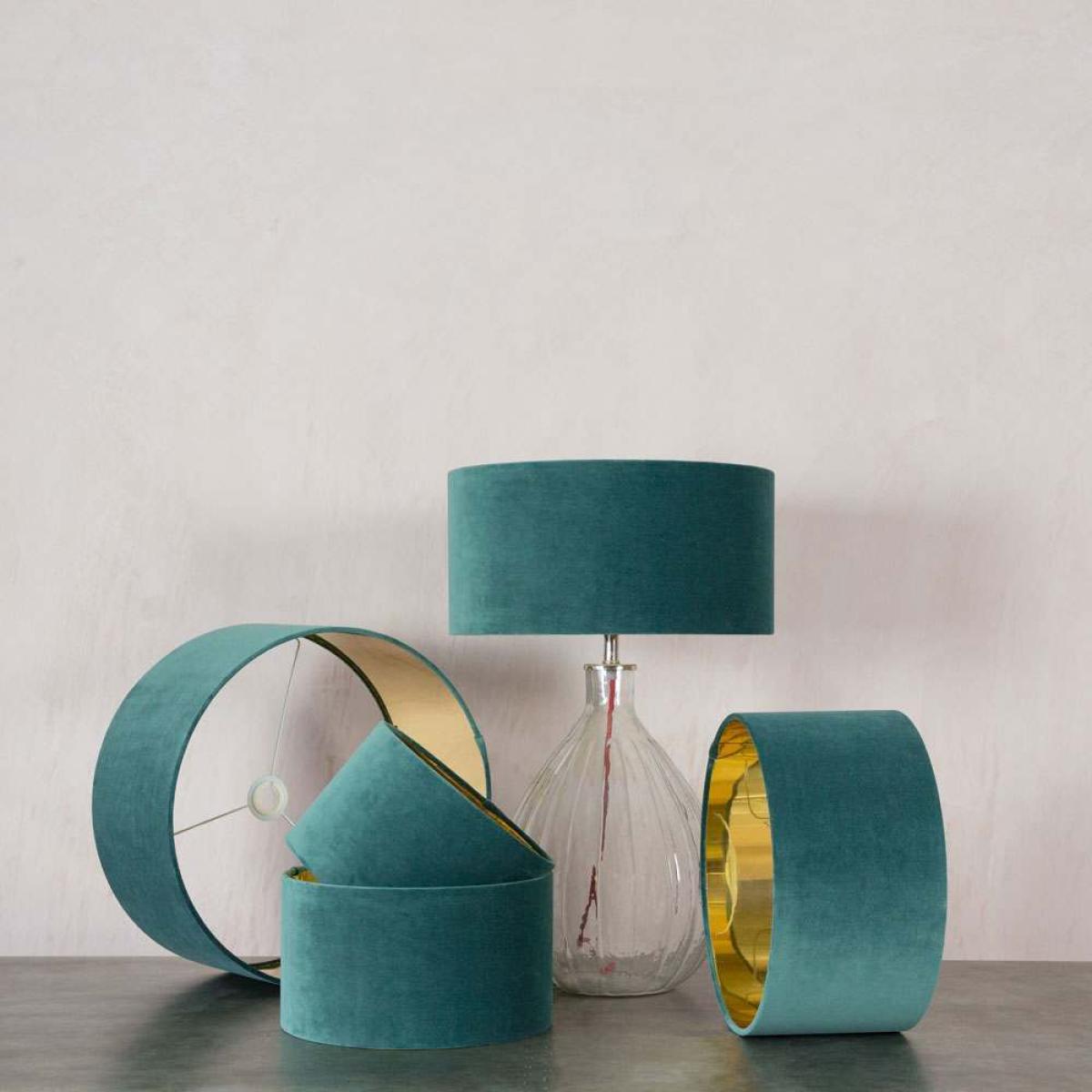 Covered in a deep coloured luxe velvet, our Ocean Velvet Lamp Shades will bring undeniable elegance to your interior. Finished with a shiny gold inner that exudes a warming glow, this lighting accessory is a glamourous finishing touch. With varying sizes of shade available, they're perfect for any fixture from table lamps to ceiling lights.