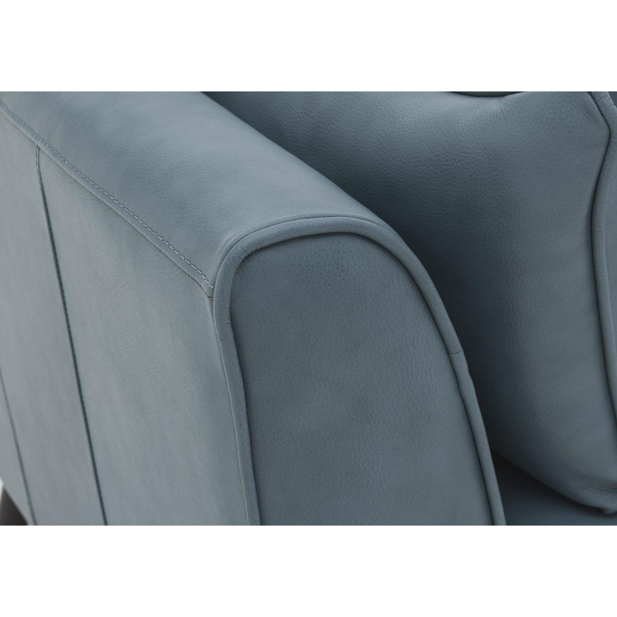 100% corrected grain leather upholstery. Foam seat cushions for a softer sit. Handcrafted in Italy. Treat your home to handcrafted, Italian luxury with the Oceano 2 Seater Leather Sofa. Handmade in Italy by master craftsmen, it has a beautiful, contemporary design with elegant, slanted arms and tapered, dark walnut feet. Its sleek, clean lines are complemented by indulgently soft foam and layered fibre seat cushions and loose fibre-filled back cushions that create the most wonderfully comfortable seating – so comfortable you’ll look forward to coming home to unwind in their soft folds every evening. And with two sumptuous bolster cushions included, your comfort is complete. Finely upholstered in a soft 100% leather that’s been buffed for an ultra-smooth finish, it’s the luxurious final touch to this beautifully designed sofa. We have a beautiful colour selection, with something to suit every interior. Get in touch on 0800 804 8879 to find out more. Exclusively available at Furniture Village, the Oceano 2 Seater Leather Sofa is part of the beautifully handcrafted, Italian Oceano collection. Natural leather has unique marks and characteristics with variance in colour and texture, and softens with use. Smoothing the cushioned top prevents ‘puddling’.