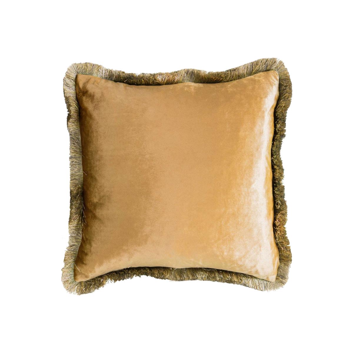 The Fringed Velvet Cushion, Ochre oozes opulencein itsdecadent design. Presented in a gorgeouslyrich ochre colour, framed with a deluxe,fringed border adding texture,the Fringed Velvet Cushion, Ochre isidealto add style and character to yourseating setupor bedspace.
