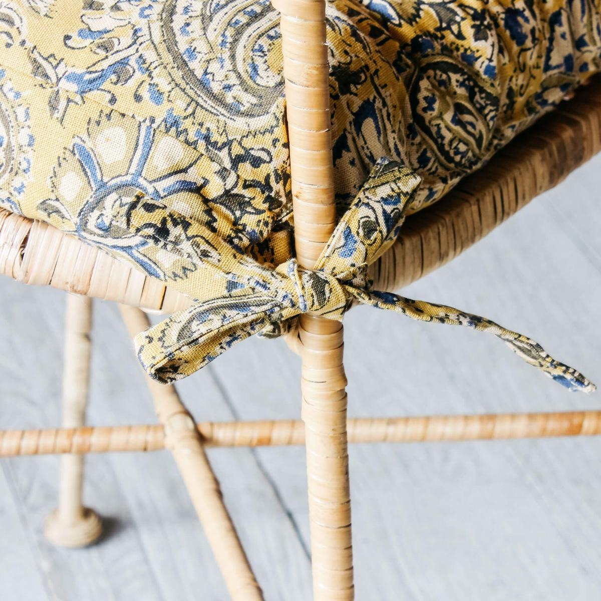 Soften up dining chairs and outdoor seating with our collection of richly patterned seating pads made of cotton with matching ties. Choose from paisley, stripes and floral patterns to match your style.