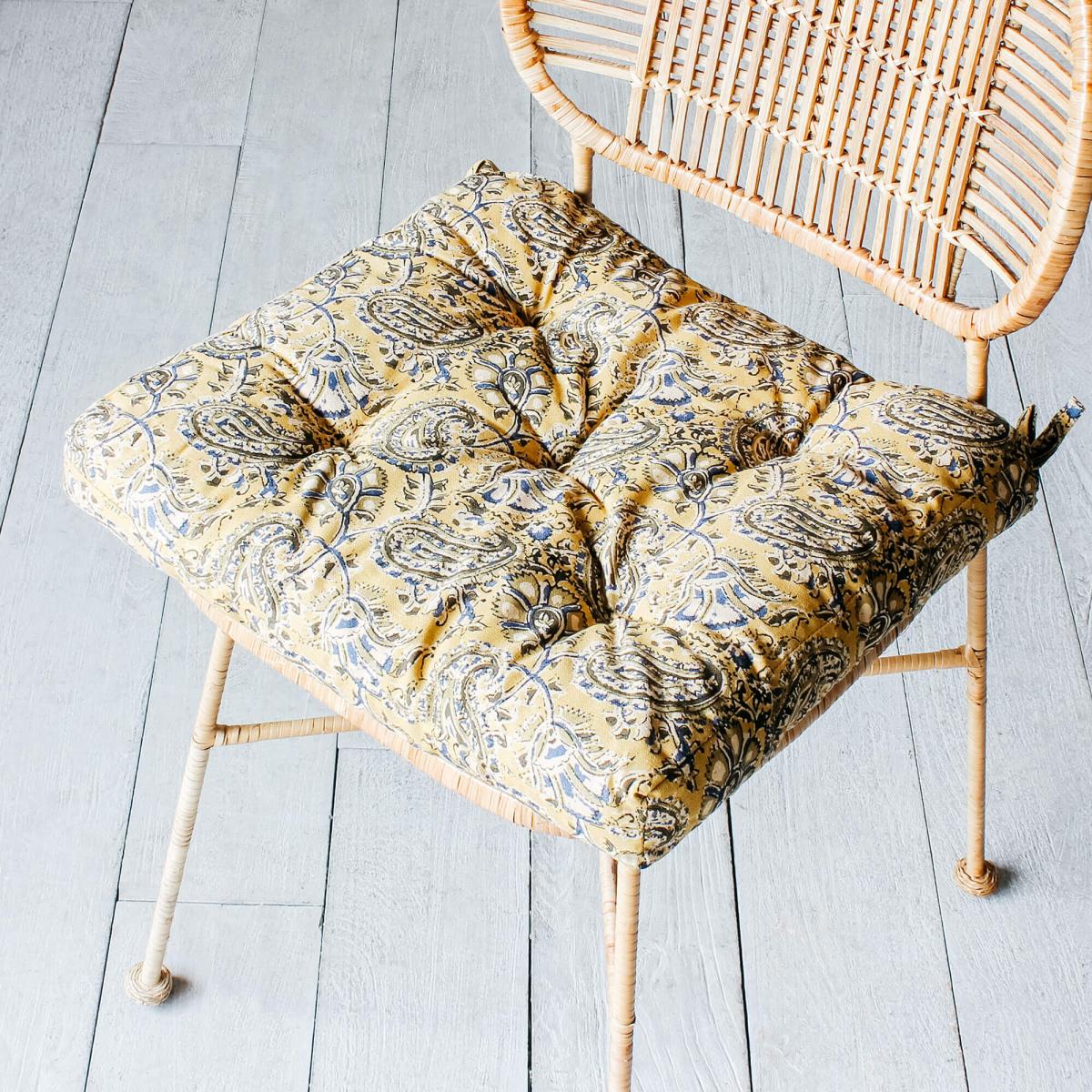 Ochre Paisley Printed Seat Pad