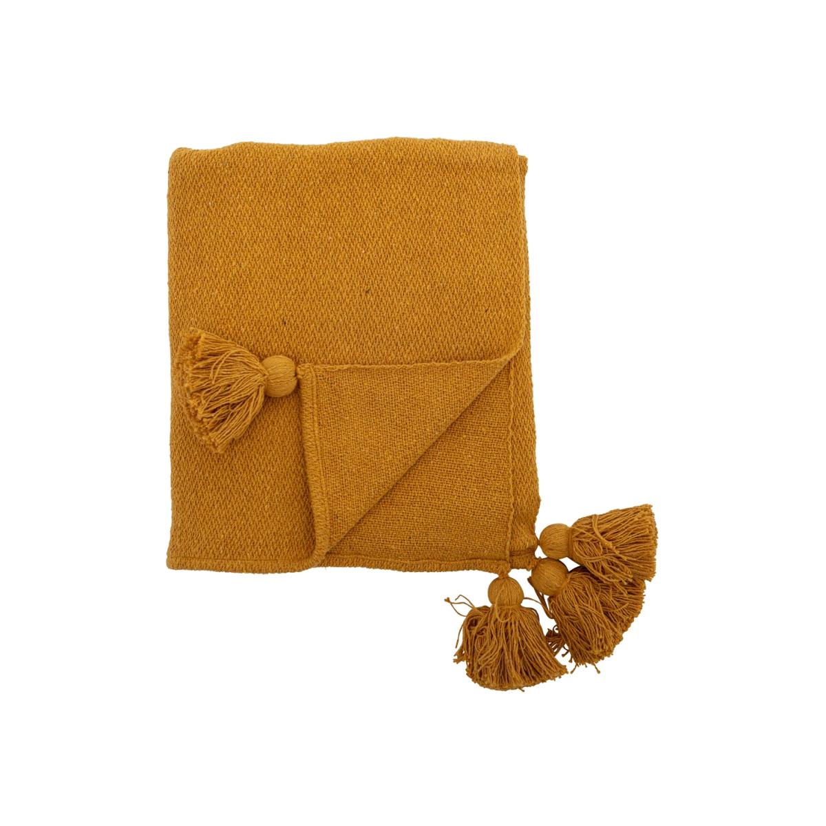 Ochre Recycled Cotton Throw Ochre Recycled Cotton Throw Blanket, Yellow | Barker & Stonehouse