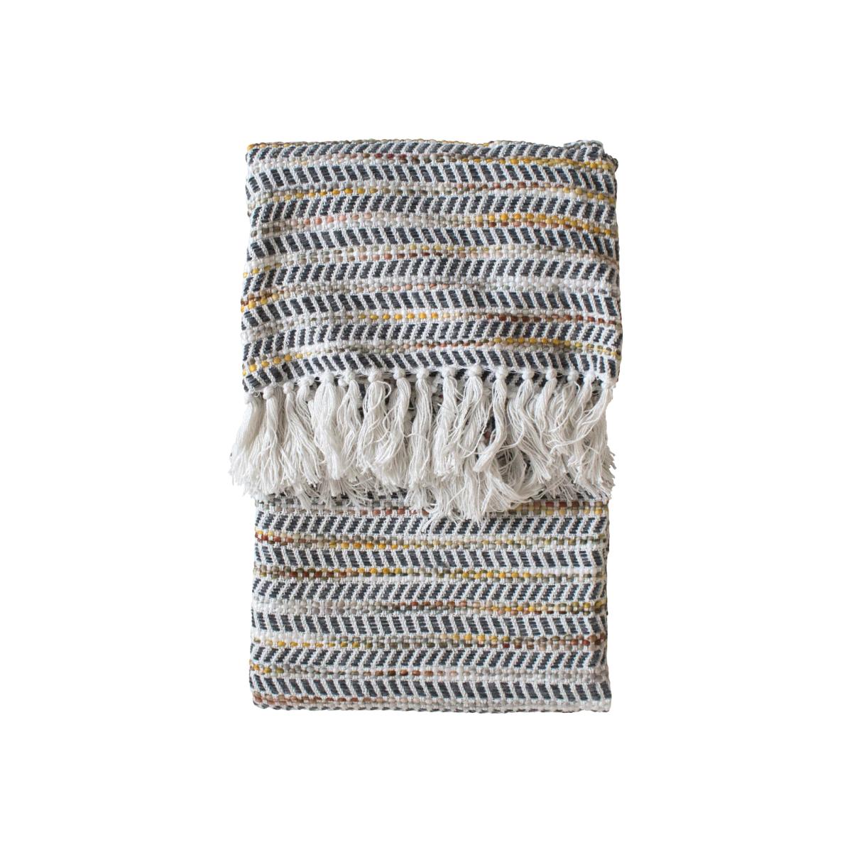Ochre Striped Throw Blanket, Yellow Cotton | Barker & Stonehouse