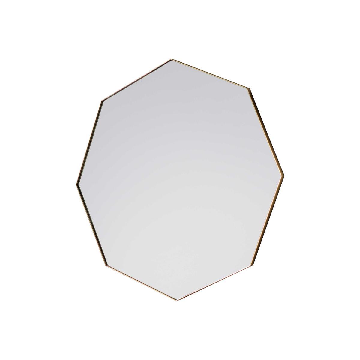 Design. The Gold Octagon Mirror is a real statement piece wherever placed. On trend due to the geometric shape and minimalist style. ,. A soft gold hue finishes the edg. Ing. Of the mirror. A unique accessory that suits an assortment of inter. Ior schemes.