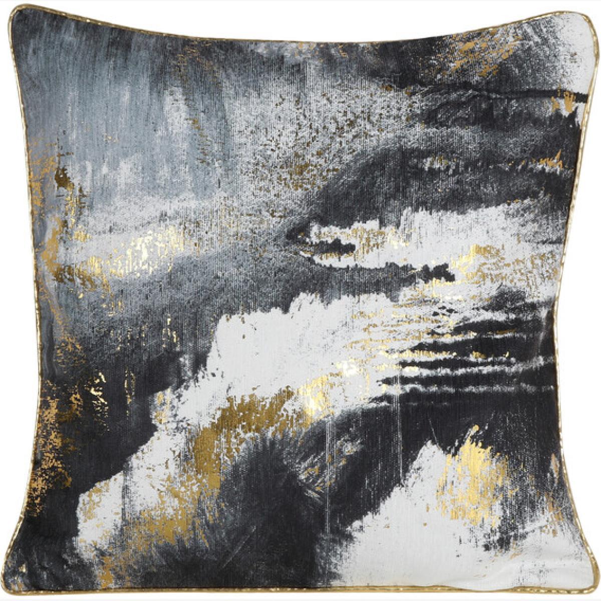 A beautiful piece for your living room or bedroom, this stylish and contemporary Octavia Abstract Cushion is sure to bring colour and modernity to your home. Featuring an abstract watercolour design with metallic gold foiled accents and a piped edge, this lovely cushion can complement and contrast a variety of home decor styles and trends for your convenience. Whether you're upgrading your bedding style or making the sofa more comfy, this cushion is the fashion-forward choice.