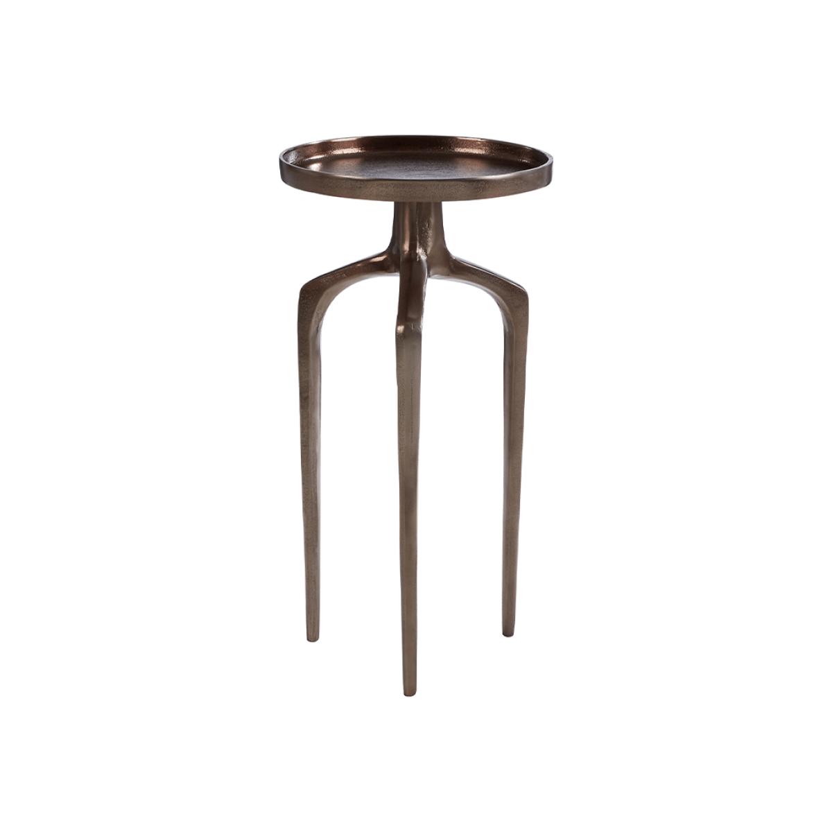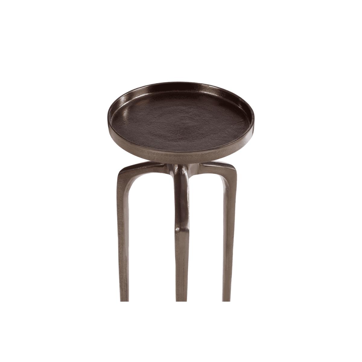 Function meets form with the Octavia side table. With sleek, sculptural legs and a rustic bronze finish, this tactile accent piece offers decorative contemporary design and serves as a stylish sidepiece to your sofa or bedside.