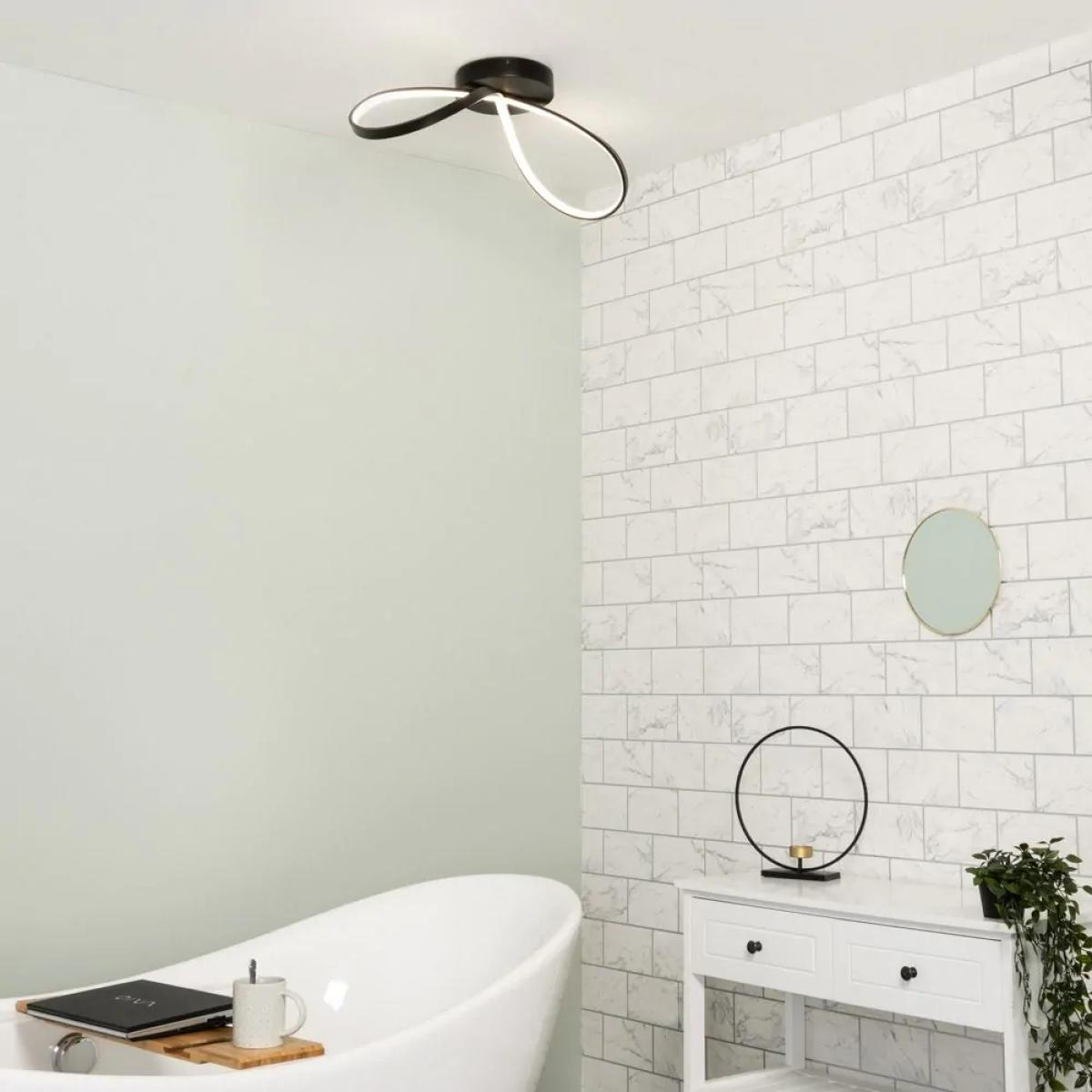 I really like this Wavy Bathroom Ceiling Light for its sleek, contemporary design and flexible styling potential. The black finish makes it versatile, perfect for modern, minimalist interiors or even edgy industrial spaces. Its sculptural, looped shape adds visual interest without overwhelming the room, making it well-suited for contemporary bathrooms or en-suites where a statement piece is desired. For a polished look, pair it with matte black fixtures and neutral tones, allowing the light’s unique form to stand out. Practical tips include positioning it centrally to evenly distribute light and pairing it with dimmable bulbs for adjustable ambience. Overall, it's a stylish addition that balances form and function beautifully.