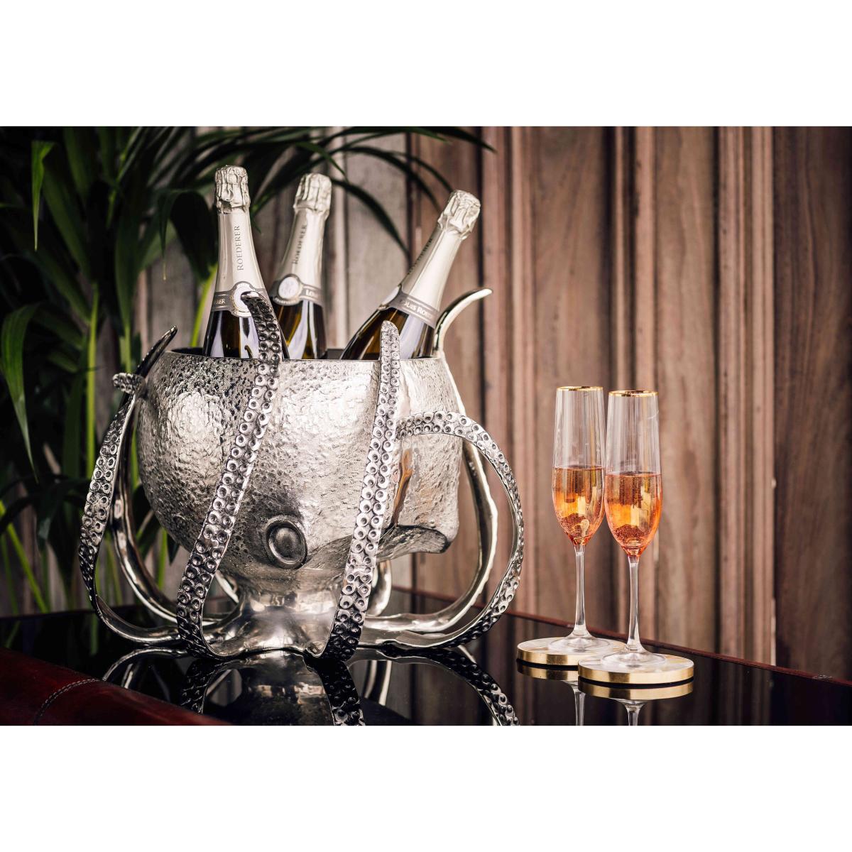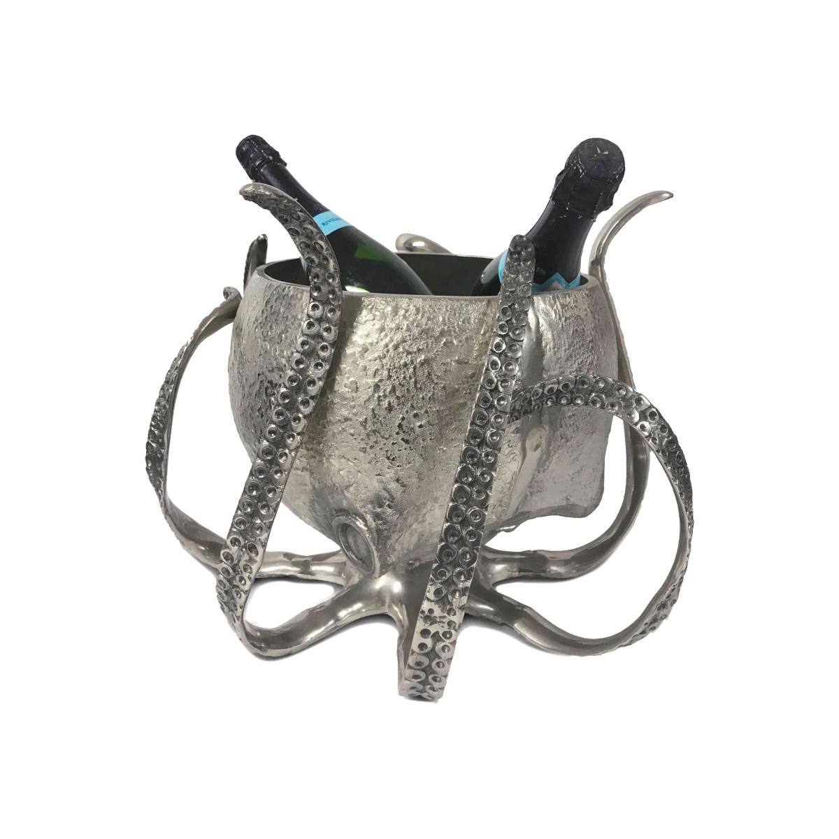 Our octopus champagne bath is simply stunning – eye-catching, detailed and large enough to hold three bottles of your fizz of choice. Simply stunning. Why you'll love it A party essential and a truly unique dining room accessory. Textured silver-coloured finish with fantastic detailing. Large enough to hold three bottles of champagne. With plenty of room for ice, your fizz remains perfectly chilled. This octopus champagne bath is part of the Furniture Village home accessories collection. What you need to know Made of aluminium. Suitable for both indoor and outdoor use. Be sure to bring inside when not in use. Wash by hand and dry with a soft cloth. Dimensions Height: 35 cm (14 in). Width: 40 cm (16 in). Depth: 45 cm (18 in).