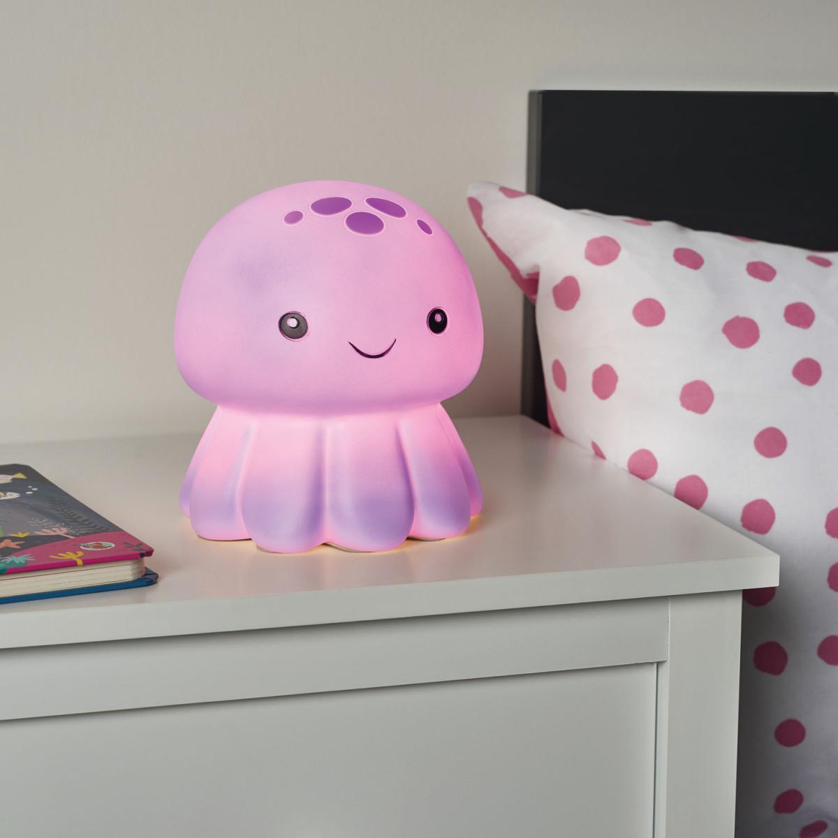 I love the octopus table light for its playful yet contemporary design, making it a charming addition to both children’s bedrooms and quirky living spaces. Its soft purple colour and cute face give it a welcoming feel, perfect for creating a cosy atmosphere. It works particularly well in eclectic or nautical-inspired interiors, where it can add a pop of colour and fun. Practical styling tips include pairing it with neutral-toned bedding or soft furnishings to make it stand out, or using it as a bedside table lamp for added bedside character. Its size and adorable shape make it an ideal accent piece for shelves, bedside tables, or even as a colourful statement in a playroom.