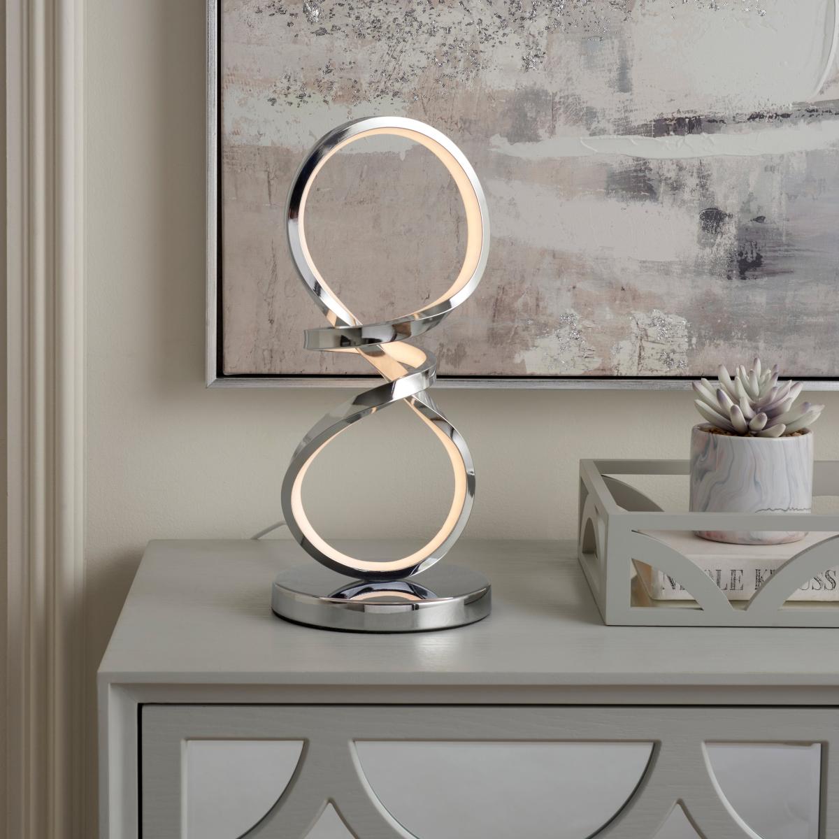 Complete with integrated LED lights, this stunning table lamp features a modern swirl design in a gorgeous finish. These integrated LED lights are compatible with a dimmer switch, allowing you to set the perfect ambience in your home. Available in a range of colourways.