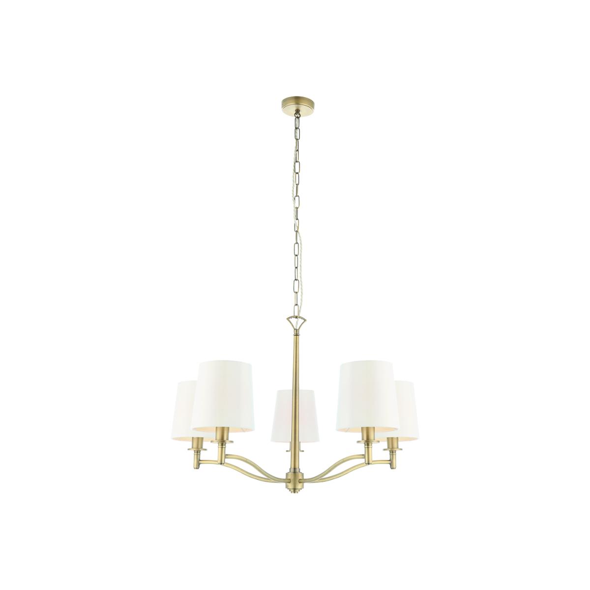 Odelia Five Light Pendant in Antique Brass with Vintage White Fabric