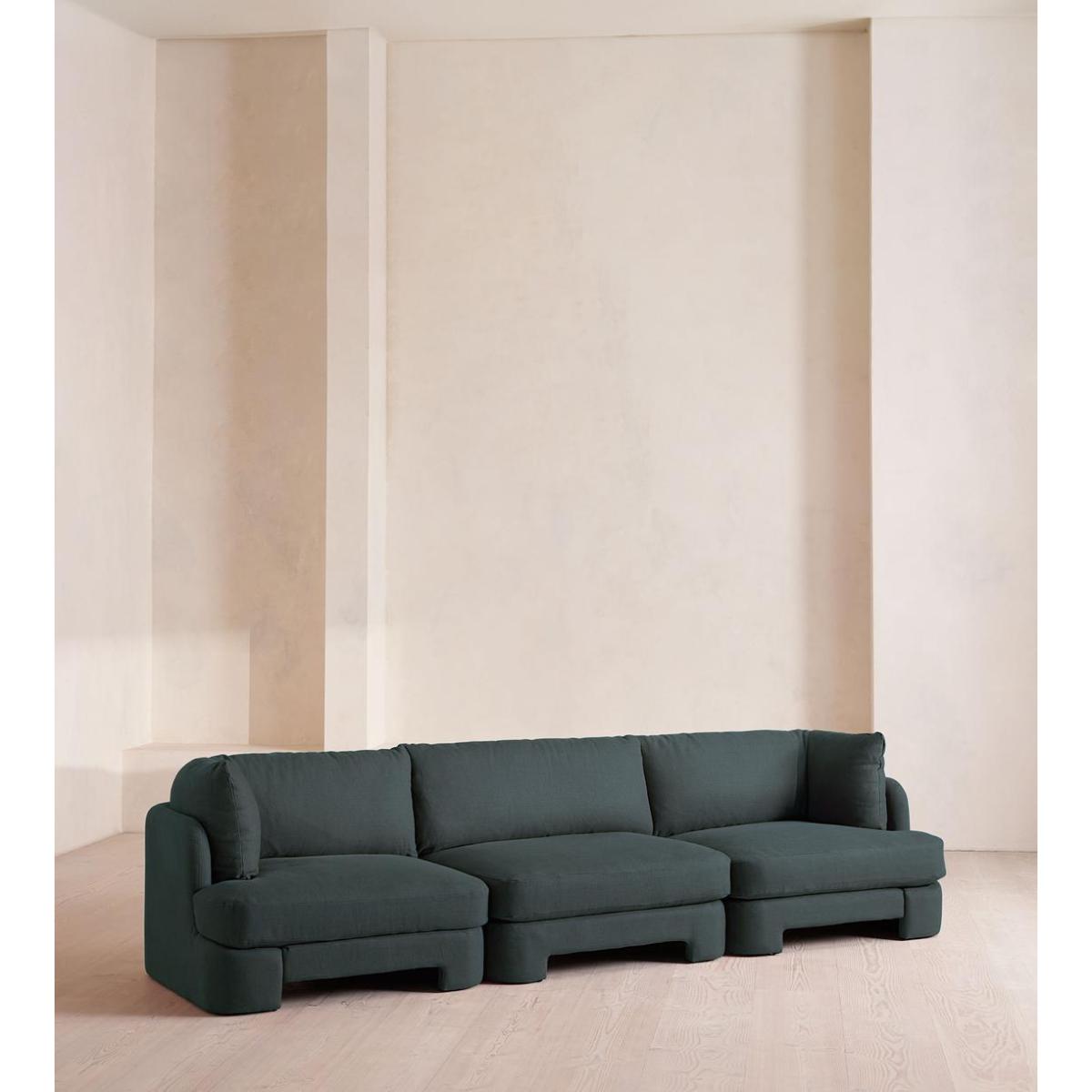 I love this sofa for its versatile design and rich Prussian blue hue, making it a statement piece in both modern and classic interiors. Its modular setup lends itself well to larger open-plan spaces or more intimate seating areas, offering flexibility in arrangement. The linen fabric adds a touch of understated elegance and durability, perfect for everyday use. To style around it, I’d suggest keeping a neutral palette with textured cushions or throws to add layers of comfort without overwhelming the colour. Complementing the sofa with subdued pastel or earthy tones in the surroundings can really make the blue pop without feeling too bold. It’s ideal for creating a sophisticated yet relaxed living space, especially if you want to balance contemporary chic with a cosy vibe.