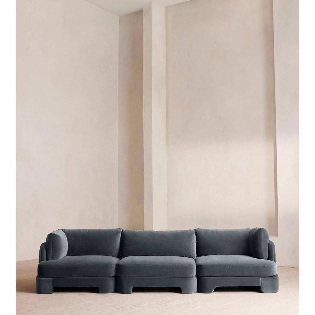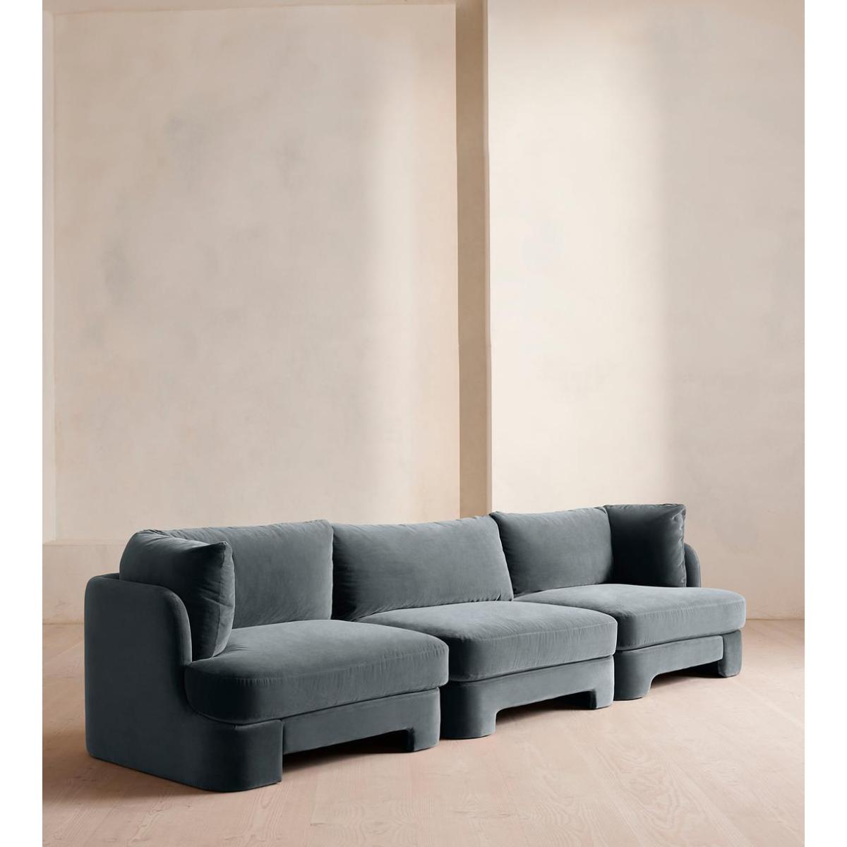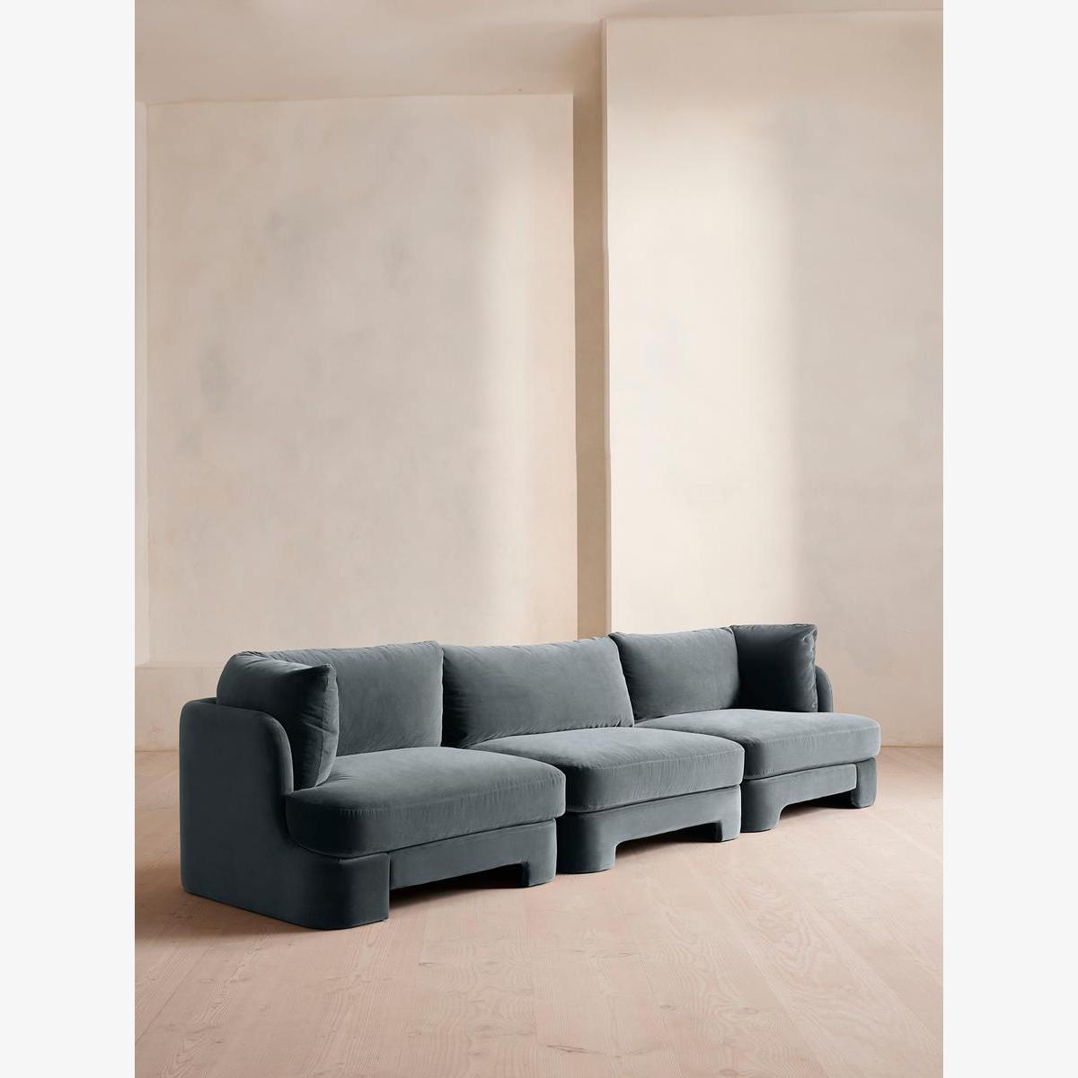 Odell Deeper Sit Modular Sofa, Four Seater, Velvet Grey Blue UK