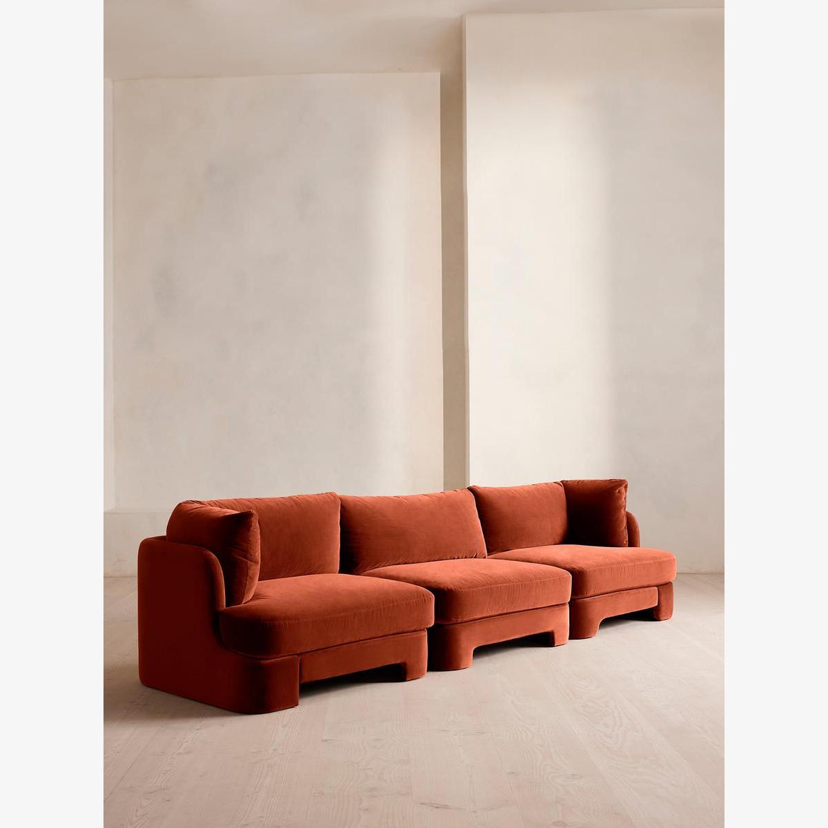 Odell Deeper Sit Modular Sofa, Four Seater, Velvet Rust UK