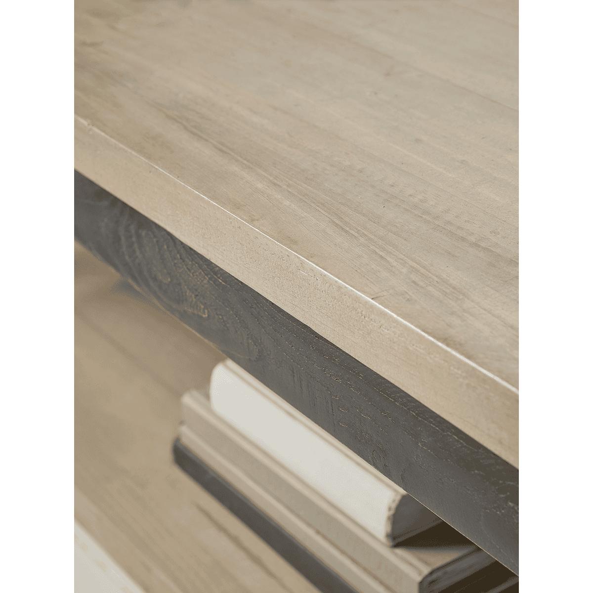 I love this coffee table for its blend of natural timber and sleek black legs, which makes it versatile enough to suit a range of interior styles from Scandi to modern industrial. It works particularly well in minimalist or neutral-toned living rooms, where it can add warmth without overwhelming the space. Practical styling tips include layering it with a few well-chosen books or a tray for organisation, and adding small decorative objects or plants to create visual interest. Its open lower shelf also provides space for storage or display, making it both functional and stylish.