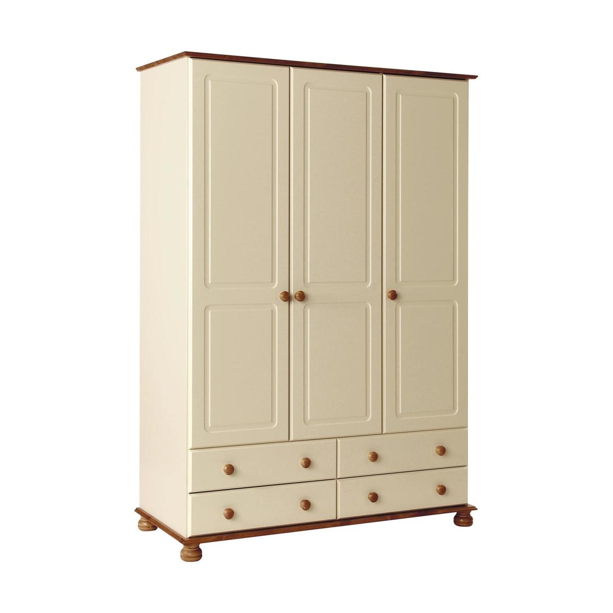 Odense Cream and Pine 3 Door 4 Drawer Wardrobe Cream
