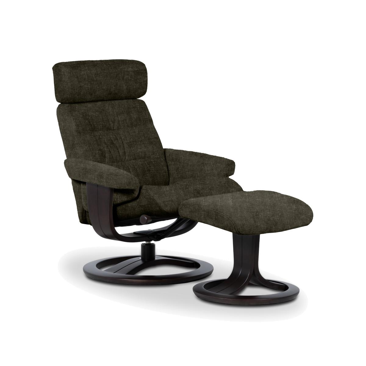 Upgrade your relaxation with this large swivel recliner chair and footstool set. Deeply cushioned and super-stylish, it’s handmade and only available at Furniture Village. Why you'll love it This swivel reclining chair and footstool duo is as comfy as it looks. The effortless way to recline, swivel and put your feet up in style. Generous proportions for all-day lounging. Height-adjustable headrest makes it even easier to relax. Dynamic lumbar support eases an aching back. Premium quality foam cushioning for exceptional comfort and support. Extra strong tubular steel frame comes with a lifetime guarantee. Manual recliner mechanism with an easy-to-use lever operation. Both pieces have circular bases. In a wide choice of high-quality upholstery fabrics. Also available in 100% leather. Handmade exclusively for Furniture Village. This large swivel chair and footstool is part of our Effortless collection. What you need to know Self-assembly required. Medium comfort level. Seat suspension: sinuous spring. Seat cushioning: cold cure moulded foam. Cushioning is fixed. Back suspension: sinuous spring. Back cushioning: cold cure moulded foam. Cushioning is fixed. Arm cushioning: cold cure moulded foam. Please allow time for the recliner mechanism to ease. Minor gaps are necessary to ensure ease of motion and may be exaggerated depending on floor type. Some fabrics can show wear on areas of more use or in direct sunlight. Clean regularly using a soft brush or vacuum with the curtain attachment. Deal with any spills promptly. Professional cleaning advised for oil- and grease-based stains. Please read our upholstery care guide for more advice.