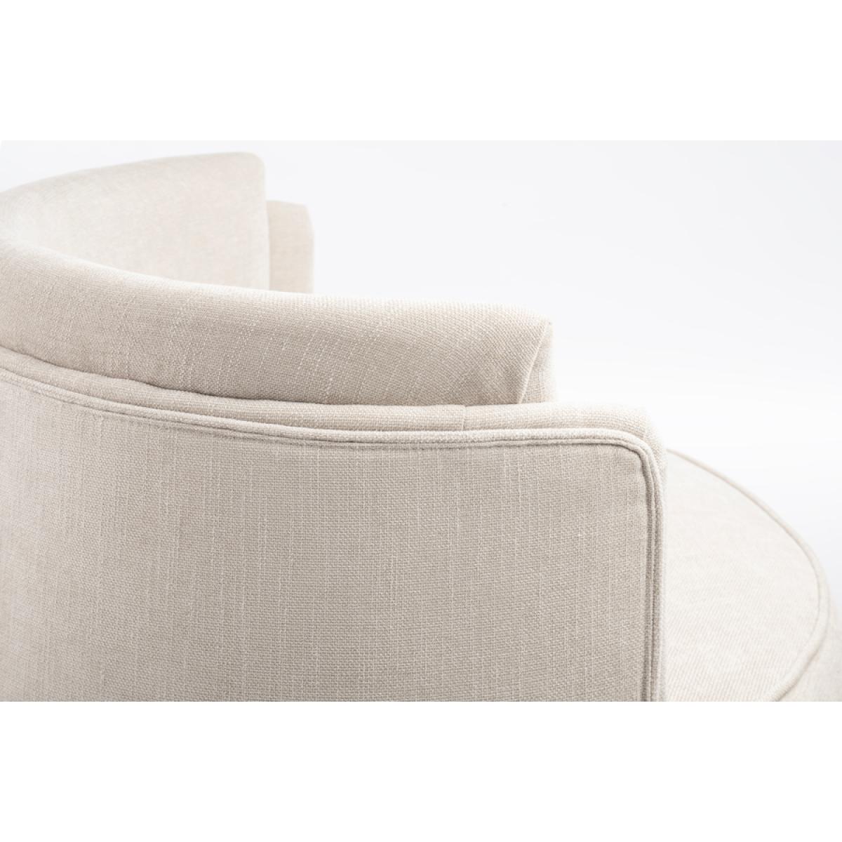 Stainless steel swivel base with black powder coated finish. Comfortable sprung seat with deep foam topping. Distinctive double-layer padded backrest. 360° swivel function. Highly durable soft-touch woven fabric with a linen-like appearance. Supplied fully assembled.
