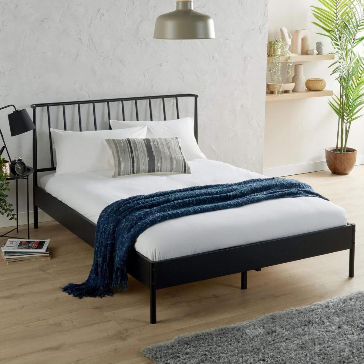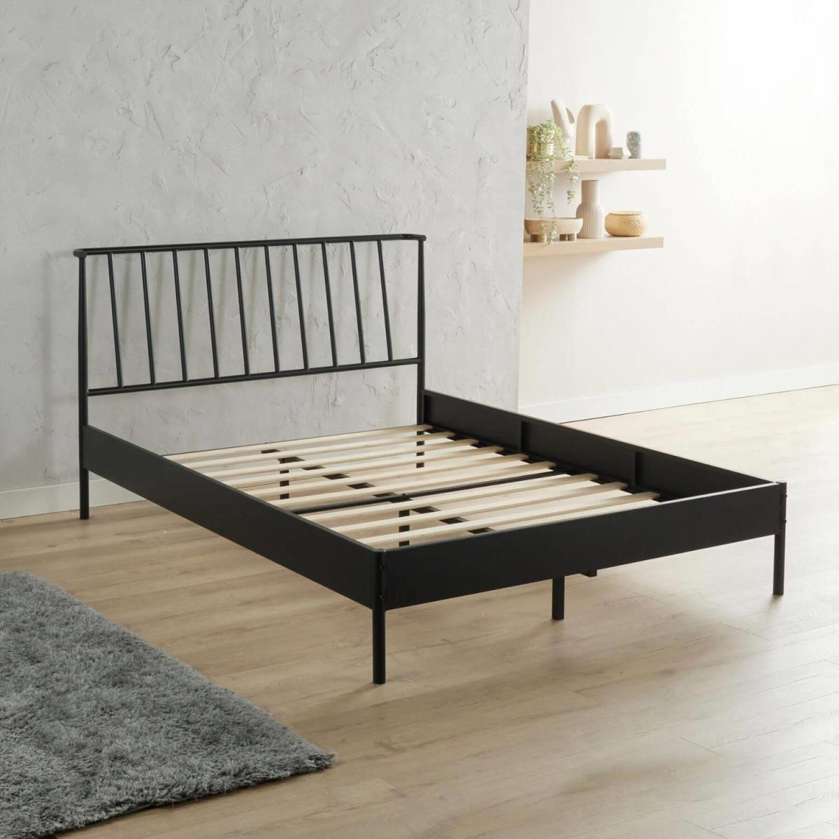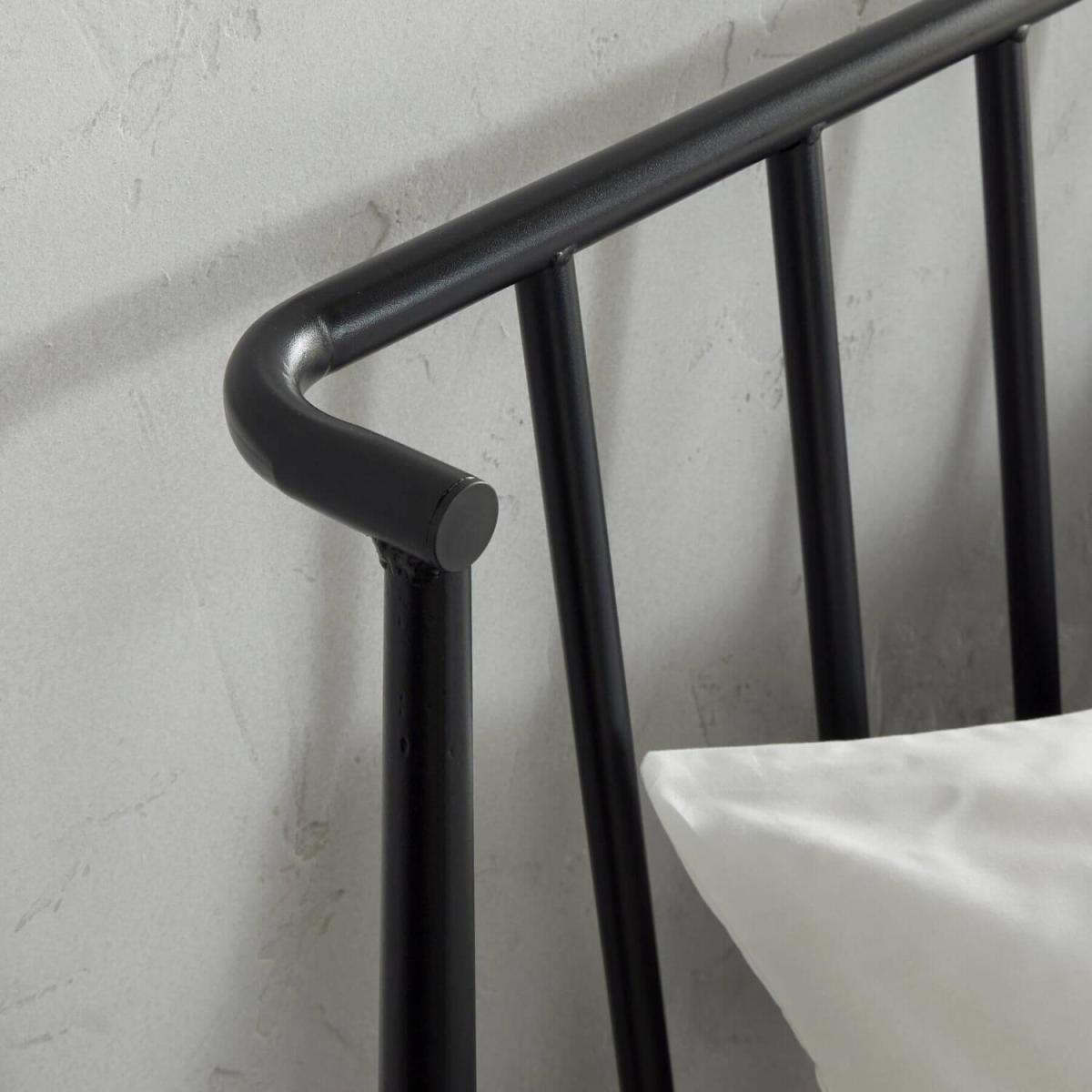 Create a stunning contrasting look in your bedroom with the modern metal platform bed frame. Expertly made from sturdy and durable metal, the base is finished in jet black for that stand-out luxury vibe that complements other neutral decor and furnishings. The base offers a slightly tapered angle to allow for a contemporary section of space beneath the bed. This can be used for storage or kept empty for a more minimalistic and spacious feel. The headboard offers a thin, ladder style design which stands out against the solid base. The base is available in three different sizes, so there is something to suit every area of floor space.
