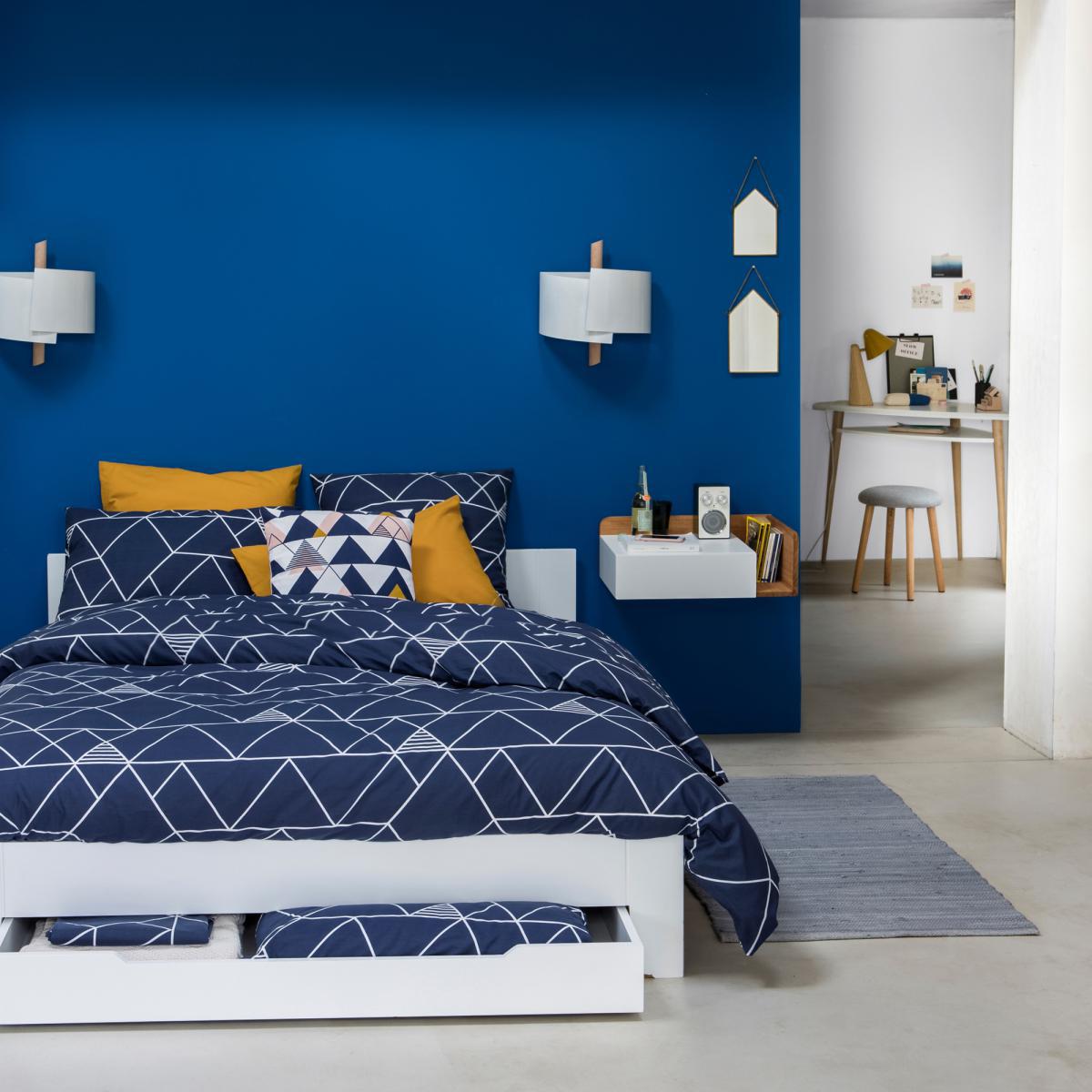 A rich blue hue gives this Scandi-inspired geometric print duvet cover a modern twist. Team it up with the rest of the bedding in the range. And mix and match with different colours and designs from our other ranges to add your own unique style to the bedroom.