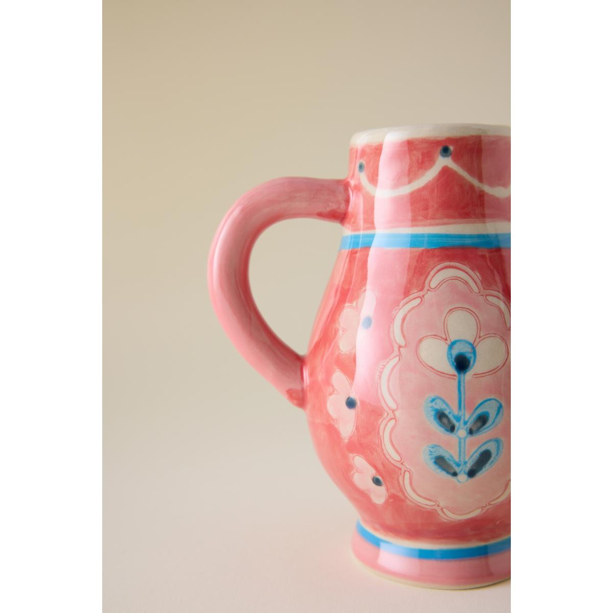 I love the Odina Vase for its playful shape and vibrant colours, making it a real statement piece. It works particularly well in eclectic or bohemian interiors, where its lively pattern can add personality, but it can also brighten up minimalist spaces as a contrasting accent. To style it effectively, consider pairing it with simple, monochrome flowers to let the colours pop, or leave it empty for a decorative touch on a shelf or side table. Its size and dual handles make it versatile - perfect for experimenting with different arrangements or simply using it as a standalone ornament.