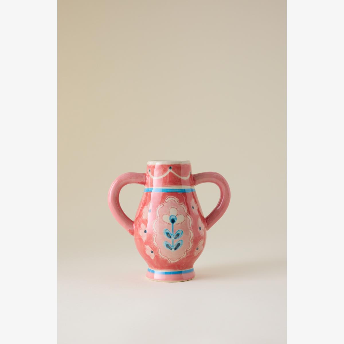Hand-painted with beautiful floral motifs, the Odina vase is adorned with oversized handles that cast an eye-catching silhouette. * Hand-painted stoneware * Please note, due to the crafted nature of this item some variation may occur * Avoid chemical cleaners * Imported