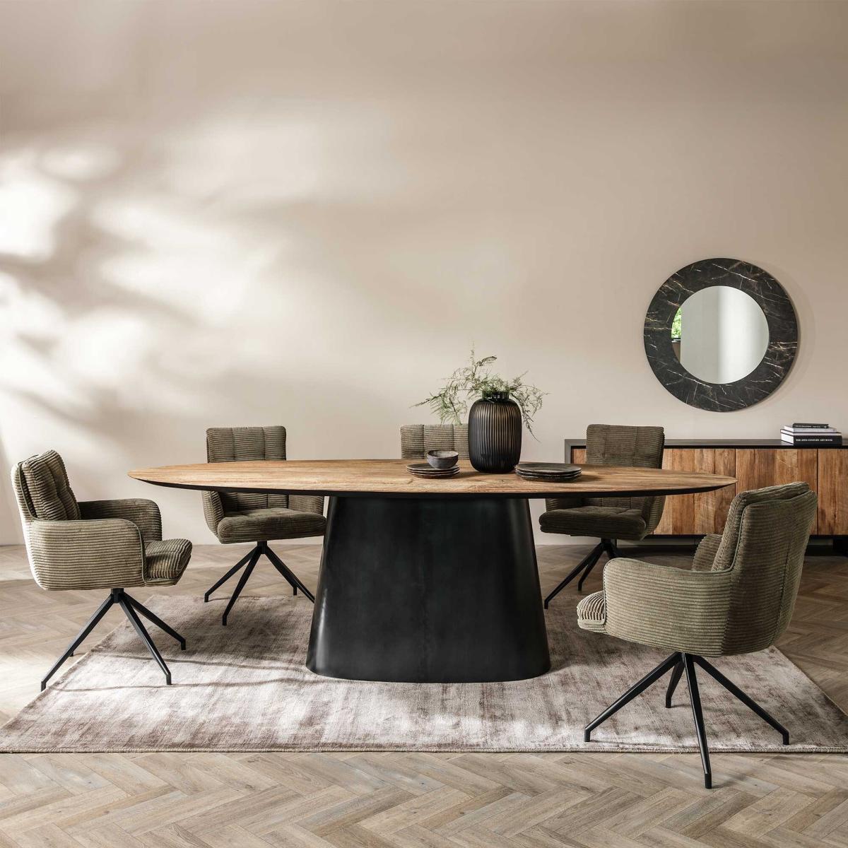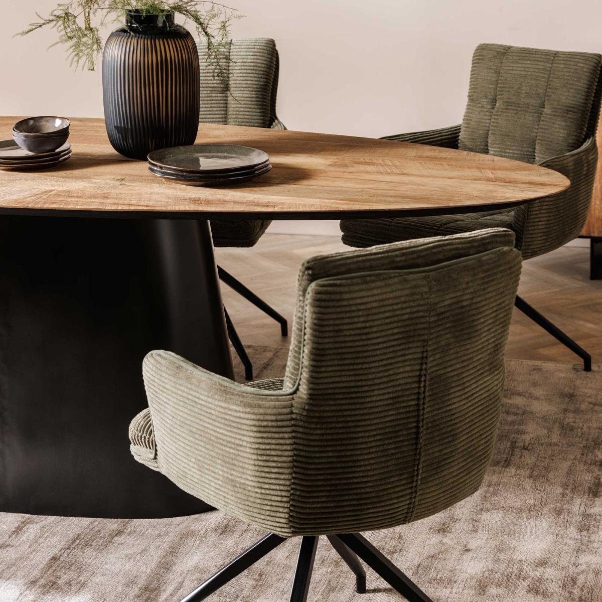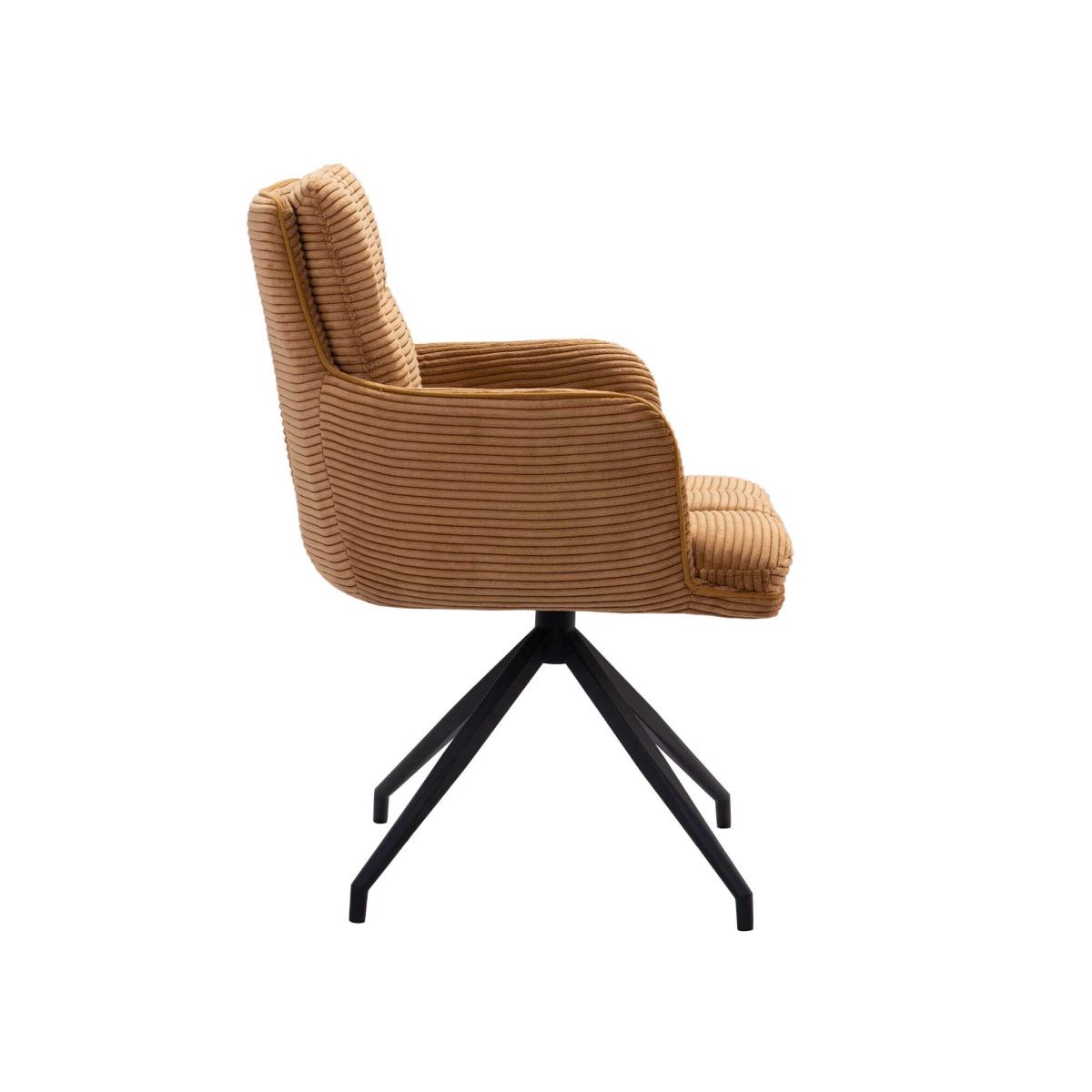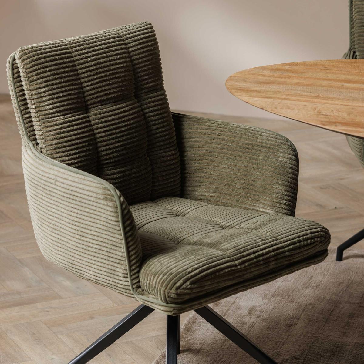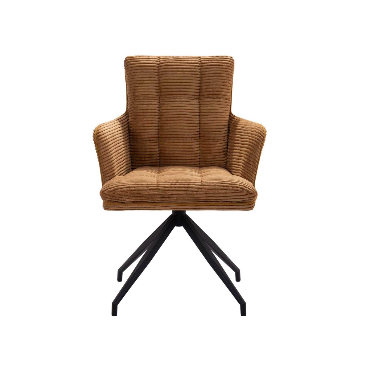 I’d reach for this mustard-velvet swivel chair whenever you need a statement piece that doesn’t shout for attention but still brings warmth and texture to a room. The soft, ribbed upholstery and gentle swivel action make it ideal for dining spaces where you want a relaxed, sociable feel without sacrificing support or style. Pair it with a sleek oak table or lean-industrial metal accents to balance the plushness, and add cushions in deep teal or slate grey for contrast. It works just as well in a home office corner or reading nook - simply tuck a slimline side table beside it and layer in a neutral rug to ground the look.