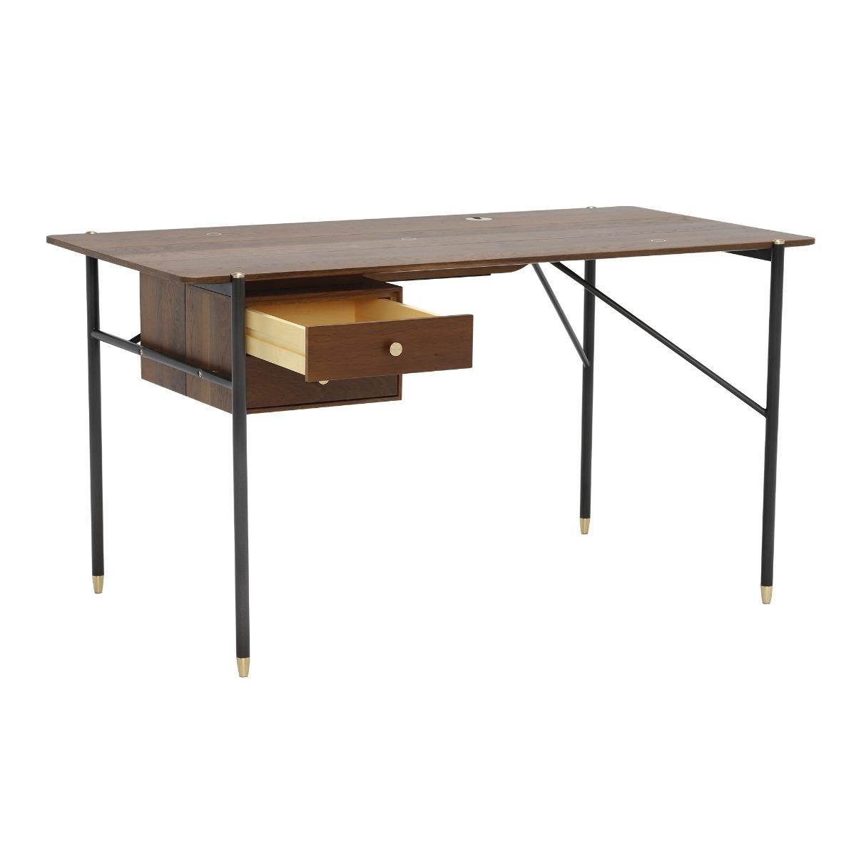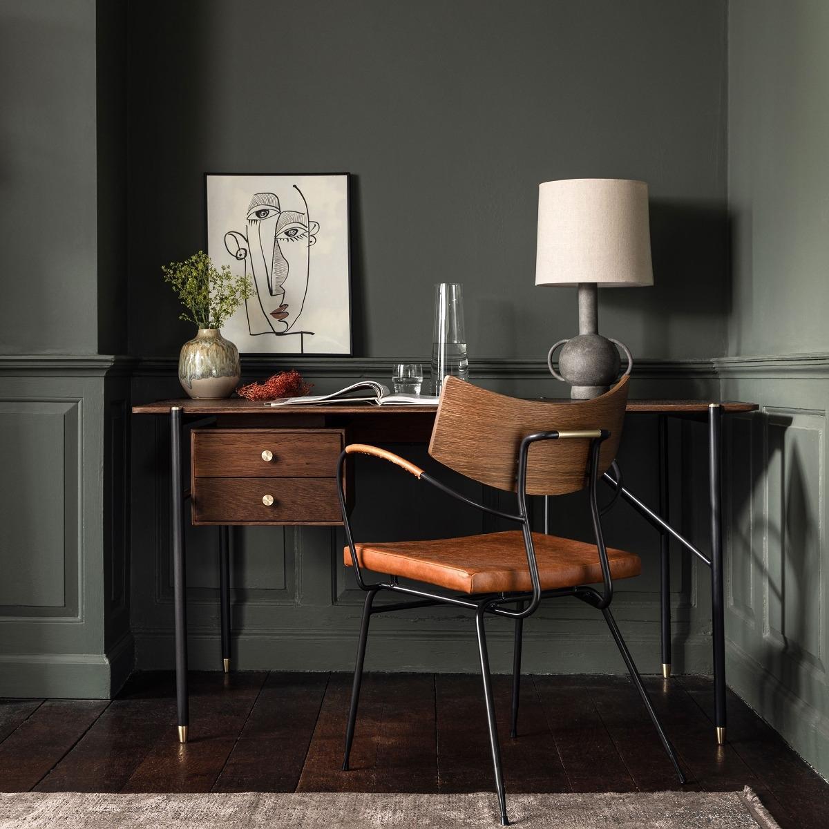 I love the Odisha desk for its sleek yet functional design, making it a versatile piece for various interiors. Its combination of warm wood and metal details lends itself well to minimalist, industrial, or contemporary schemes. The compact size makes it ideal for a home office or study nook, while the built-in drawers provide handy storage for stationery or small essentials, maintaining a clutter-free look. Practical styling tips include pairing it with a statement desk lamp, a simple organiser, and a comfortable chair in neutral or contrasting colours to enhance its modern aesthetic. Adding a green plant or simple artwork nearby can also soften the space and create a welcoming work environment.