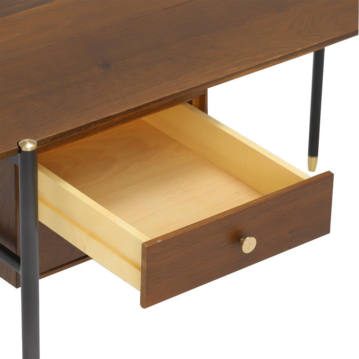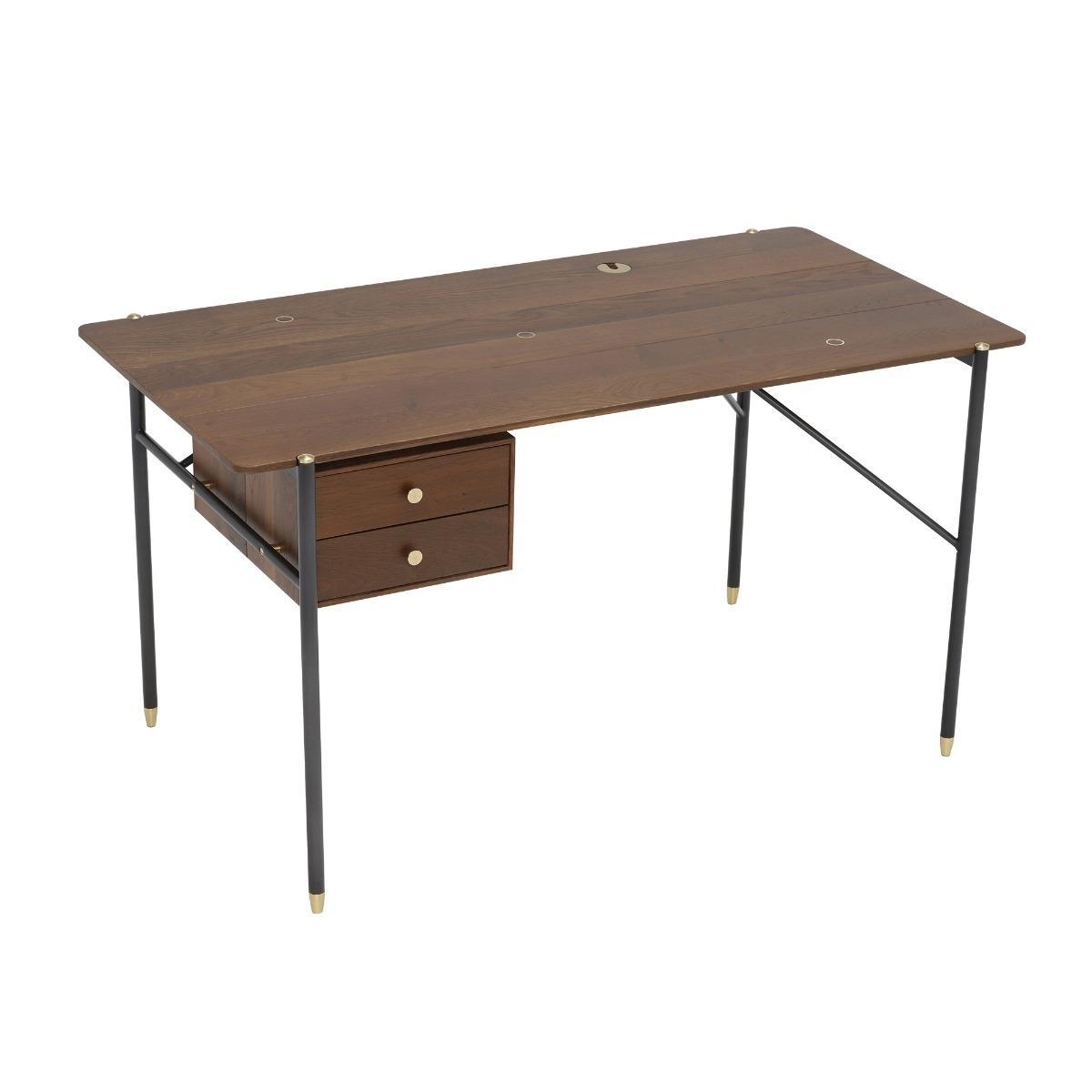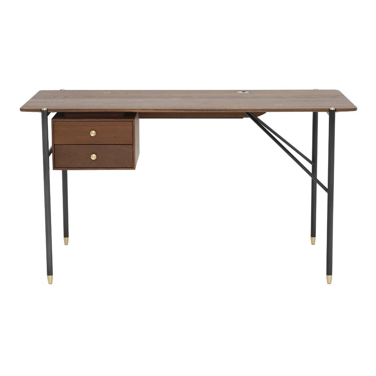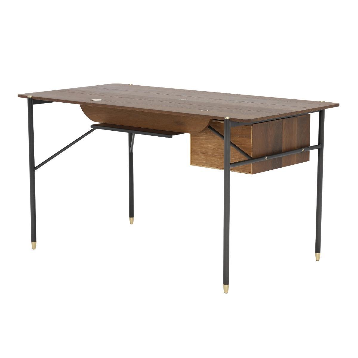 Packed with charisma and charm, the Odisha Desk offers a classic design with a rustic twist and provides a stylish space for productivity. The boards are engineered from thinly sliced oak, presenting a delicate yet sturdy construction. Solid brass inlays, feet and drawer handles gracefully provide contrast to its rustic quality. The Odisha will look fantastic in both industrial or natural interior décor and will easily tie your workspace together.