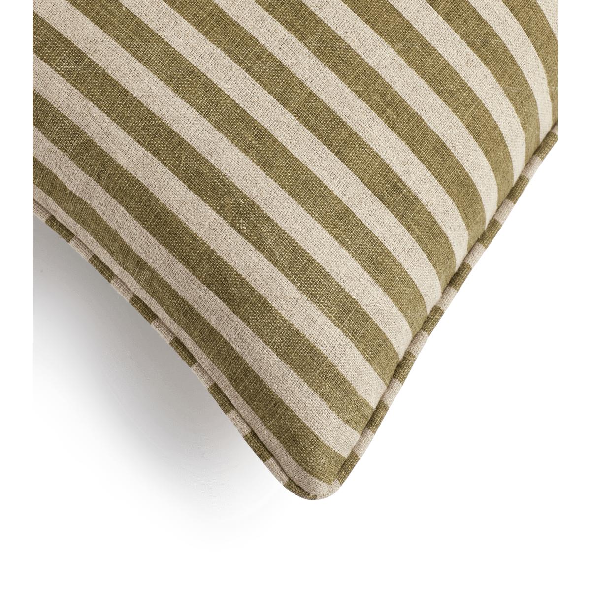 Switch up your scheme day to day with this cushion cover, featuring a hand screen-printed abstract design on the front and a classic stripe on the back. The fresh green stripe carries through onto the piping for added detail.