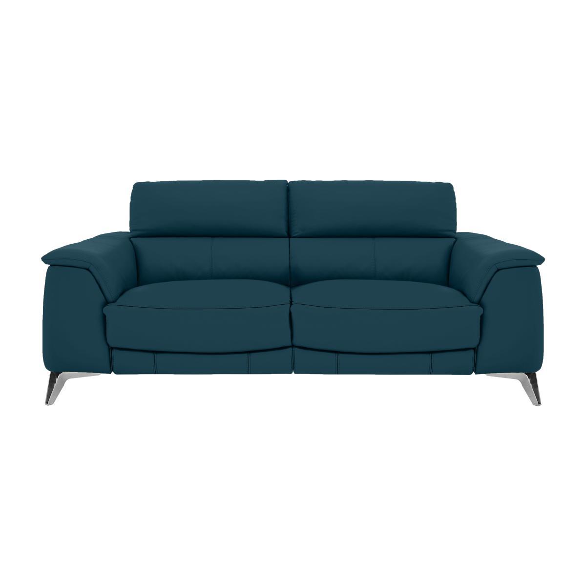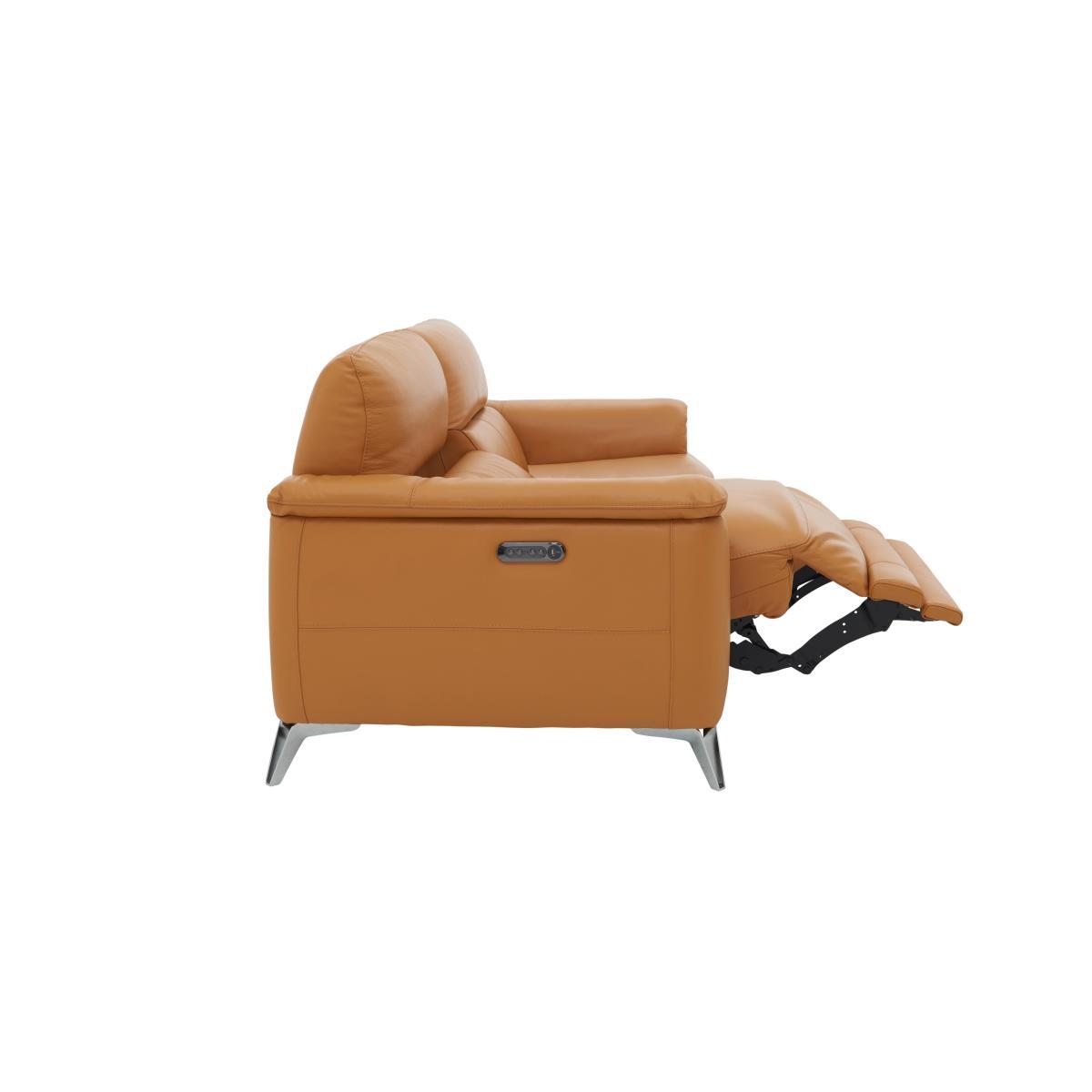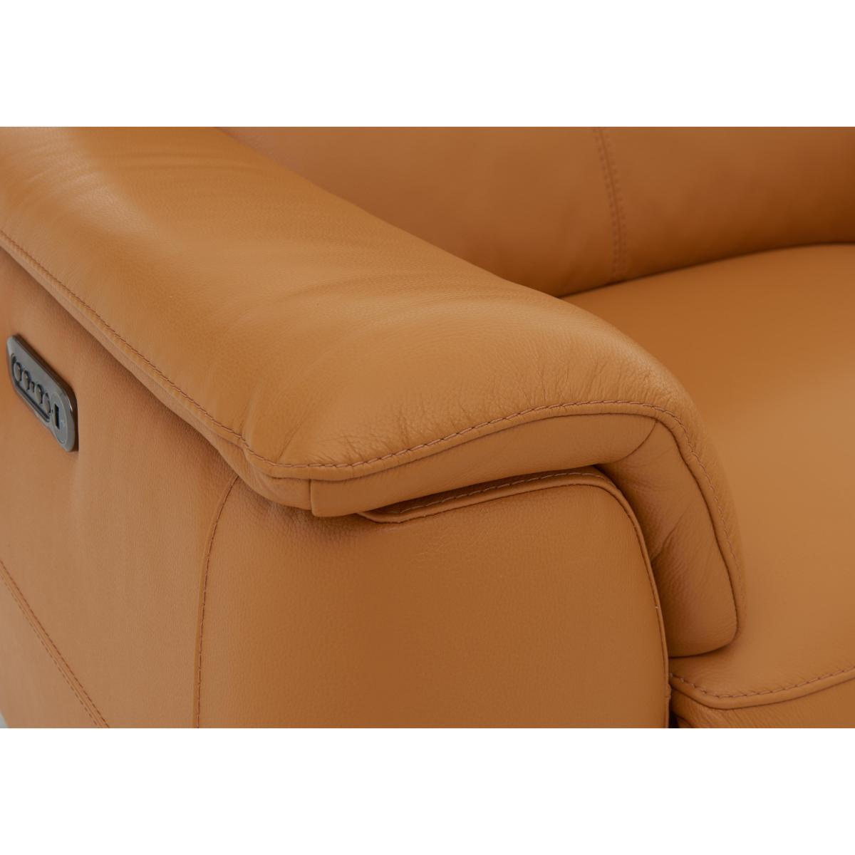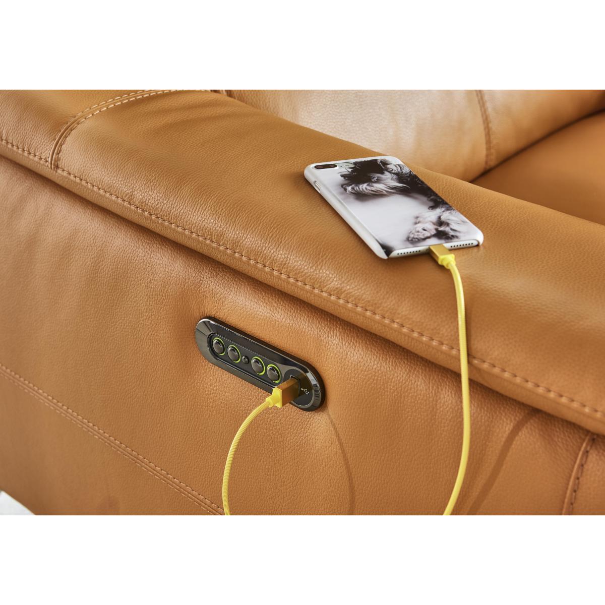 Exclusively made for Furniture Village, the Odyssey range is a sleek, modern range that oozes with indulgent comfort and practical features likes USB ports and cup holders. Boasting clean modern lines, minimalist chrome feet and a contemporary open base design with a compact style, ideal for those living in smaller spaces. And the comfort on offer is truly indulgent with supportive pocket sprung seats, plump seat cushions filled with foam and super-soft fibre. Completing your sumptuous sit are wonderfully cosy blown fibre back cushions, relaxing recliners and unique telescopic headrests which come forward to meet you for responsive support. The best part is the family-friendly, durable 100% leather upholstery which is more than up to the job of busy family life. Available in a stunning selection of colours, leathers and fabrics and in bespoke modular configurations. If you love modern style and indulgent comfort, then the Odyssey 3 seater leather recliner sofa with power headrests was made for you. Relax like never before on supportive foam and pocket sprung seats, topped with a layer of super-soft fibre for a sumptuous, pillow-like sit. Why you'll love it. Comfy 3 seater leather recliner sofa with power headrests. Pocket sprung seats for a softer, more supportive sit. Compact design in family-friendly, durable 100% leather. Also available in a choice of super-soft fabrics to suit any interior and lifestyle. Soft loose fibre cushions for pillow-like comfort. Cup holders and hidden USB ports so you can recharge with your phone. Sleek polished chrome legs. This 3 seater leather recliner sofa with power headrests is part of the Odyssey range. Made exclusively for Furniture Village. What you need to know. Part of a modular range, you can mix and match with different pieces for a bespoke sofa. Leather has unique marks and characteristics with variance in colour and texture, and softens with use. Smoothing the cushioned top prevents ‘puddling’.