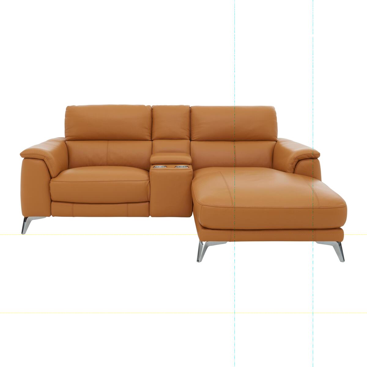 Exclusively made for Furniture Village, the Odyssey range is a sleek, modern range that oozes with indulgent comfort and practical features likes USB ports and cup holders. Boasting clean modern lines, minimalist chrome feet and a contemporary open base design with a compact style, ideal for those living in smaller spaces. And the comfort on offer is truly indulgent with supportive pocket sprung seats, plump seat cushions filled with foam and super-soft fibre. Completing your sumptuous sit are wonderfully cosy blown fibre back cushions, relaxing recliners and unique telescopic headrests which come forward to meet you for responsive support. The best part is the family-friendly, durable 100% leather upholstery which is more than up to the job of busy family life. Available in a stunning selection of colours, leathers and fabrics and in bespoke modular configurations. Discover a seamless blend of luxurious comfort and modern style with the Odyssey leather recliner chaise sofa with unique telescopic power headrests. Stretch out on the roomy chaise or curl up on the seat, both filled with extra-supportive foam and super-soft fibre. Why you'll love it. Comfy leather recliner chaise sofa with unique telescopic power headrests. Pocket sprung seats for a softer, more supportive sit. Compact design in family-friendly, durable 100% leather. Also available in a choice of super-soft fabrics to suit any interior and lifestyle. Soft loose fibre cushions for pillow-like comfort. Two cup holders and hidden USB ports so you can recharge with your phone. Sleek polished chrome legs. This leather recliner chaise sofa with unique telescopic power headrests is part of the Odyssey range. Made exclusively for Furniture Village. What you need to know. Part of a modular range, you can mix and match with different pieces for a bespoke sofa. Leather has unique marks and characteristics with variance in colour and texture, and softens with use. Smoothing the cushioned top prevents ‘puddling’.
