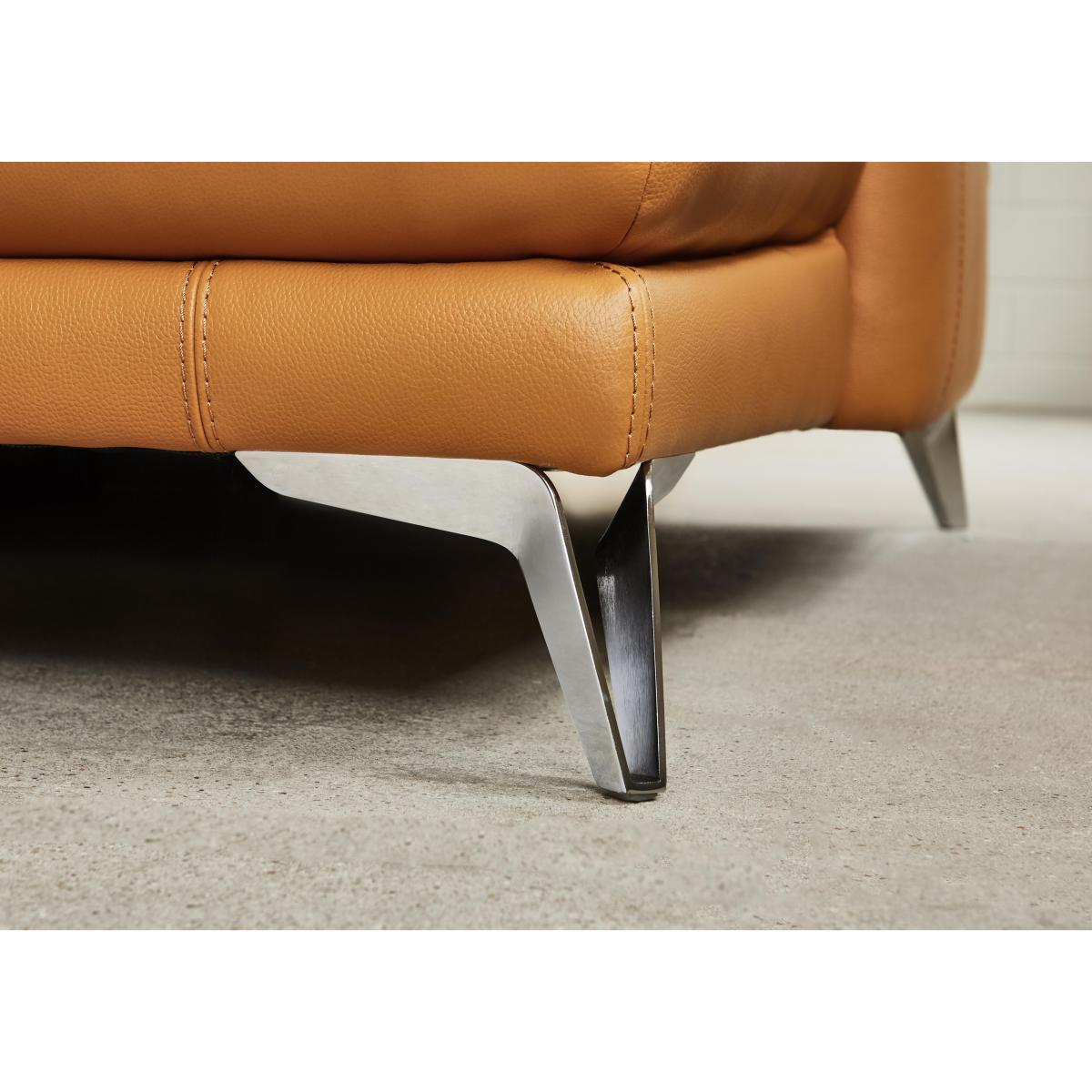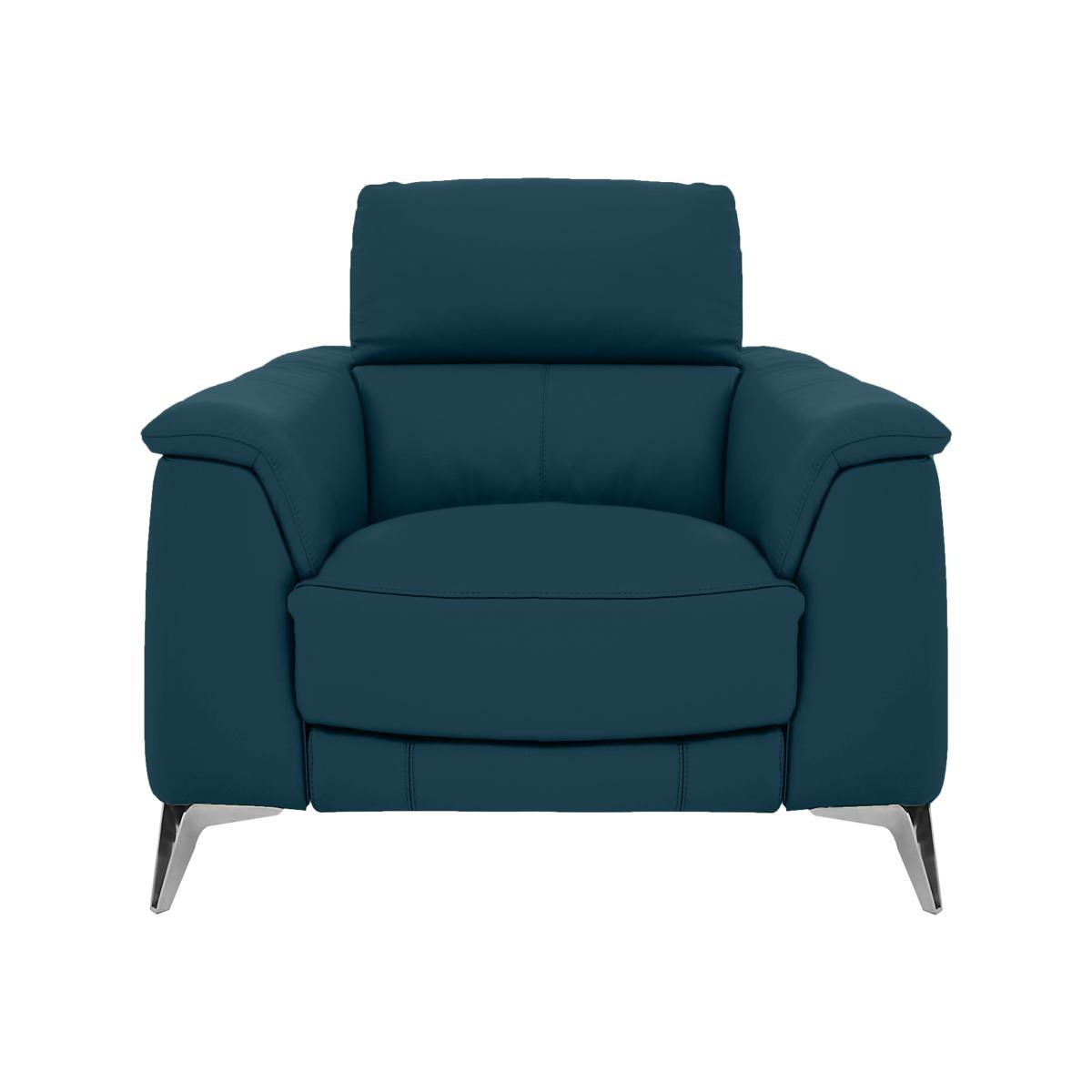 Exclusively made for Furniture Village, the Odyssey range is a sleek, modern range that oozes with indulgent comfort and practical features likes USB ports and cup holders. Boasting clean modern lines, minimalist chrome feet and a contemporary open base design with a compact style, ideal for those living in smaller spaces. And the comfort on offer is truly indulgent with supportive pocket sprung seats, plump seat cushions filled with foam and super-soft fibre. Completing your sumptuous sit are wonderfully cosy blown fibre back cushions, relaxing recliners and unique telescopic headrests which come forward to meet you for responsive support. The best part is the family-friendly, durable 100% leather upholstery which is more than up to the job of busy family life. Available in a stunning selection of colours, leathers and fabrics and in bespoke modular configurations. Simple yet sophisticated, the Odyssey leather armchair brings sleek, modern style to the fore. Boasting sumptuous pocket sprung seats and foam with super-soft fibre seat cushions, each sit feels indulgently comfortable. Why you'll love it. Comfy and stylish leather armchair. Pocket sprung seats for a softer, more supportive sit. Compact design in family-friendly, durable 100% leather. Also available in a choice of super-soft fabrics to suit any interior and lifestyle. Soft loose fibre cushions for pillow-like comfort. Cup holders and hidden USB ports so you can recharge with your phone. Sleek polished chrome legs. This leather armchair is part of the Odyssey range. Made exclusively for Furniture Village. What you need to know. Part of a modular range, you can mix and match with different pieces for a bespoke sofa. Leather has unique marks and characteristics with variance in colour and texture, and softens with use. Smoothing the cushioned top prevents ‘puddling’.