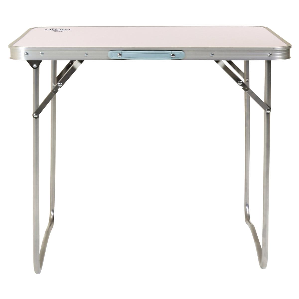 A highly practical addition to any camping kit, this folding picnic table will provide a convenient place to eat and prepare your meals and is easy to wipe clean. Designed with a sturdy steel frame and a strong and durable white table top, this lightweight picnic table can be easily folded up, for compact storage and is designed with a built-in handle for easy transportation.