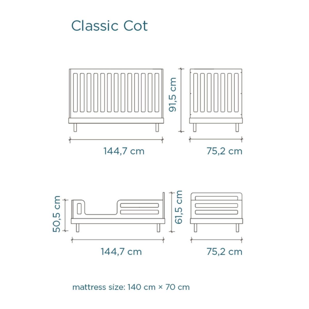 From birth to 5 years, the Classic Cot Bed from Oeuf NYC pairs modern design with practical features. Complete with fixed sides and made from solid birch wood and eco-MDF, the strong and durable bed frame has been designed to better utilise your space. With a smaller footprint than typical cots and a low overall height for easier access to your little one, the classic cot bed is a practical choice for new parents. With 3 adjustable mattress positions,simply lower the mattress height to ensure your little escape artist is kept safe while they sleep. And when they're not so small anymore, convert your cot into an equally stylish 4-sided toddler bed with the conversion kit available separately - making the transition from baby bed to toddler bed a lot less daunting. Quick and easy to assemble and convert, your nursery will be ready in no time! Choose from 2 gorgeous finishes; White and Birch or White and Walnut and pair with matching accessories and bedding to create a soothing space for your new arrival.
