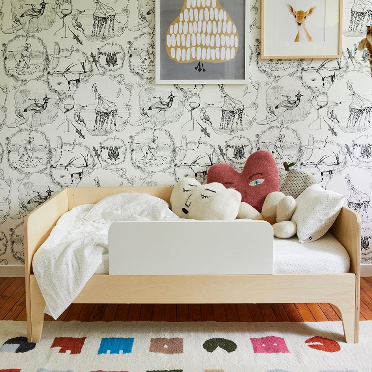 Celebrate the important milestone of moving to a "big kids" bed with the Perch Toddler Bed from Oeuf NYC. Easy to assemble and elegantly styled, what's not to love? Made from sustainably sourced baltic birch plywood and eco-MDF, the high quality and durable structure can withstand even the liveliest of little ones. Including a matching bed guard, they'll sleep securely in bed at night, whilst its low height is easy to climb onto, encouraging independence. And when they've gotten too big for their bed, easily detach the security rail to create a daybed fit for your ever-growing kiddywink and continue using the gorgeous wooden frame as a sofa. Available in white and birch or white and walnut, pair with coordinating accessories and bedding to create a cosy space for your little man or miss!.