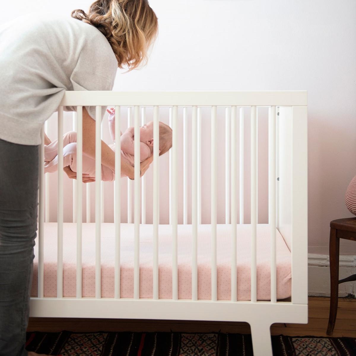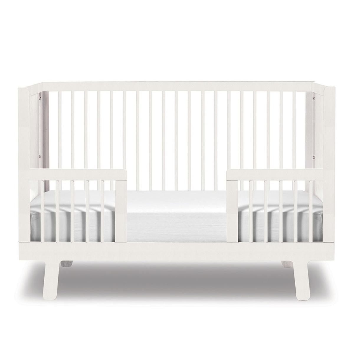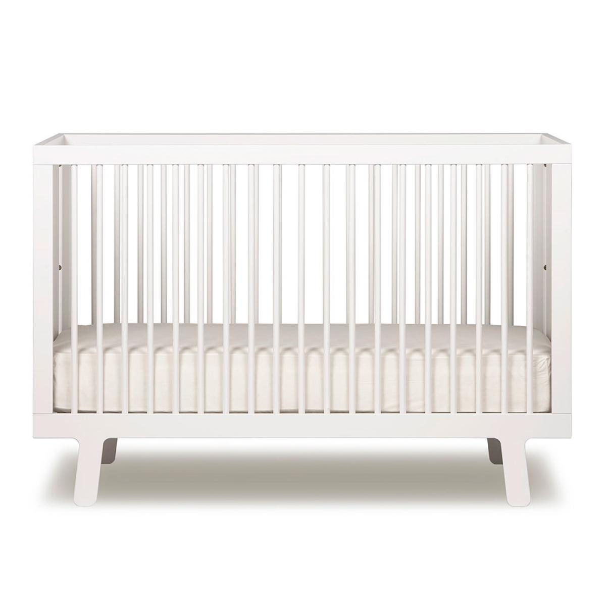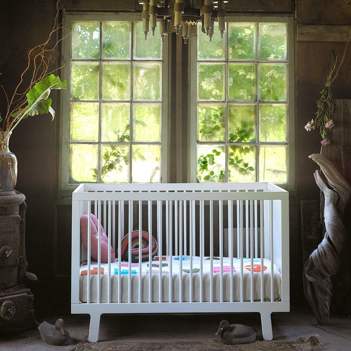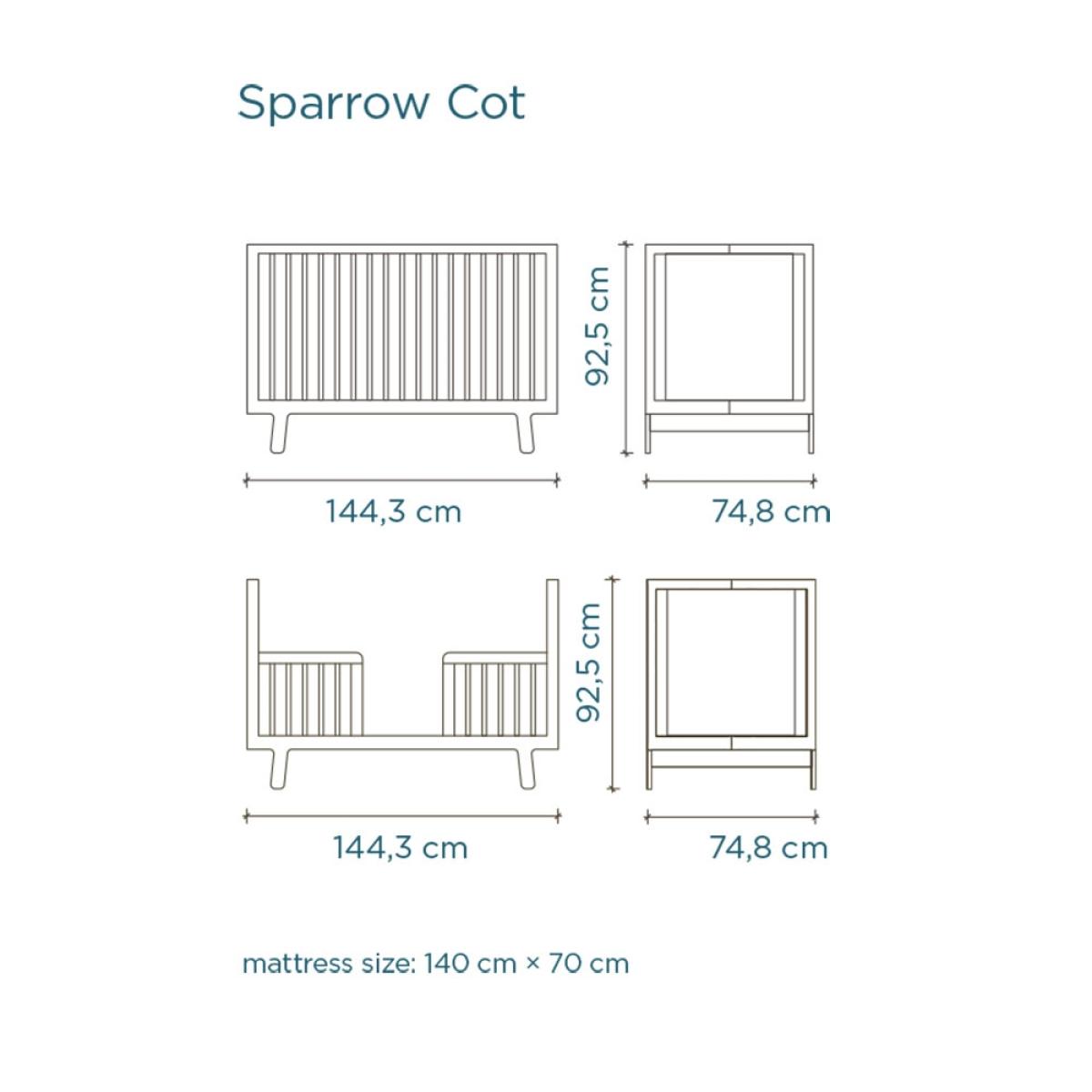 Stylish, practical and convertible; the Sparrow Cot Bed from Oeuf NYC is the perfect choice for any new parent! Featuring 3 height settings, when your baby starts sitting and standing independently, the mattress base can easily be lowered, ensuring they are safe and secure at all times. Designed to later be adapted into a toddler bed, when your little one is ready, simply transform the cot bed with the conversion kit available separately - and as it's the same bed frame the process is made less daunting for your little one! Finished in white, the high quality solid birch and baltic birch plywood frame has been sustainably produced with a non-toxic, water based paint and is both strong and durable ensuring it will last for generations to come. Also available in Walnut or Birch,. This stylish and versatile crib can co-ordinate with any nursery decor. So whether you're having a beautiful boy or a gorgeous girl, they are sure to love their new bed!.