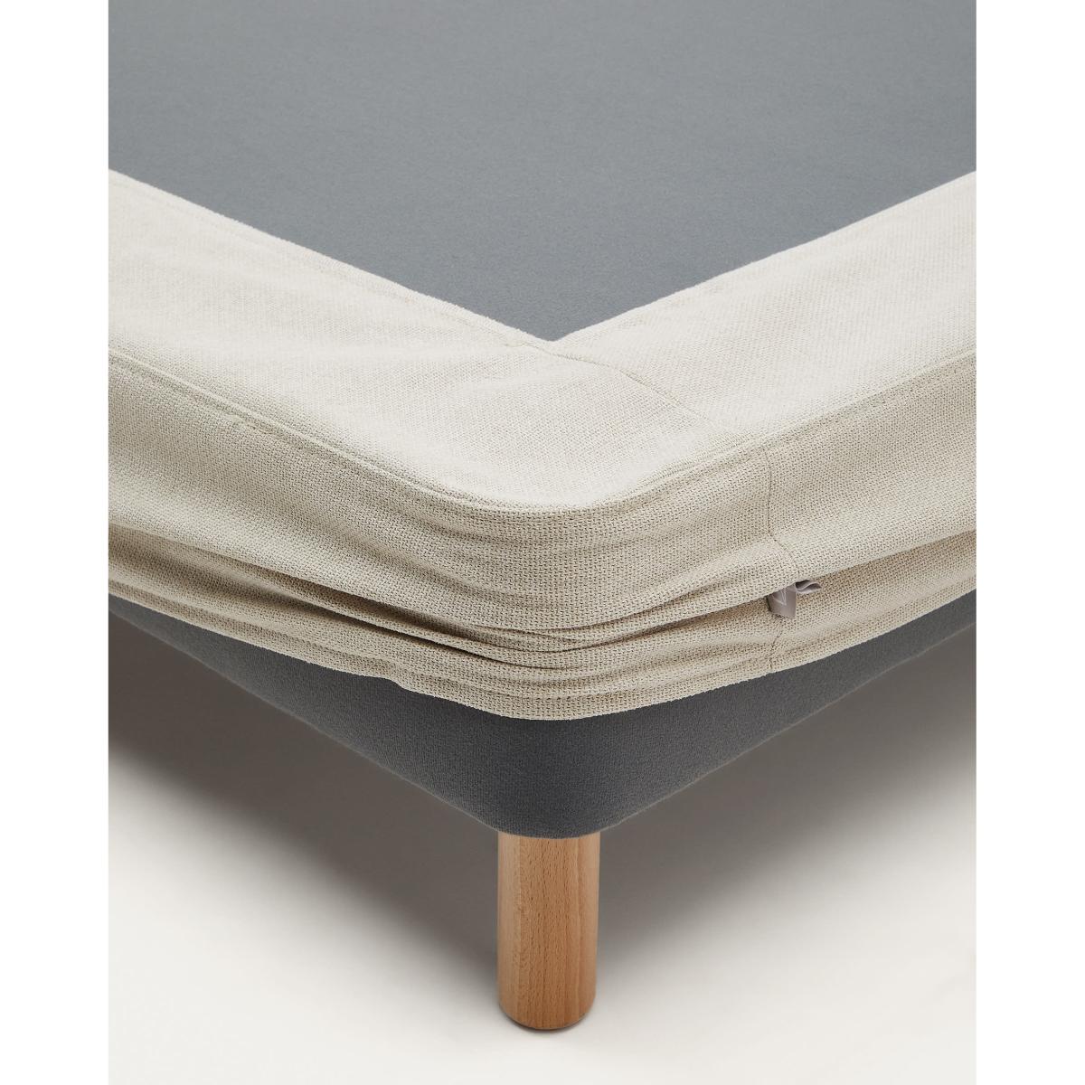 Ofelia base with beige removable cover and solid beech wooden legs for a 180 x 200 cm mattress
