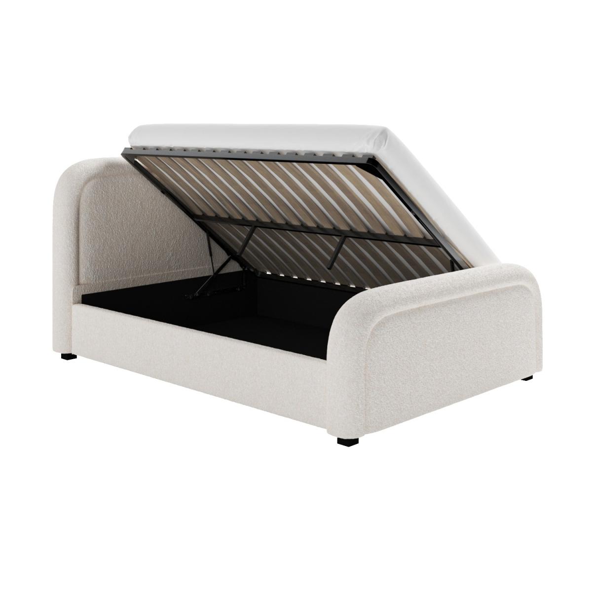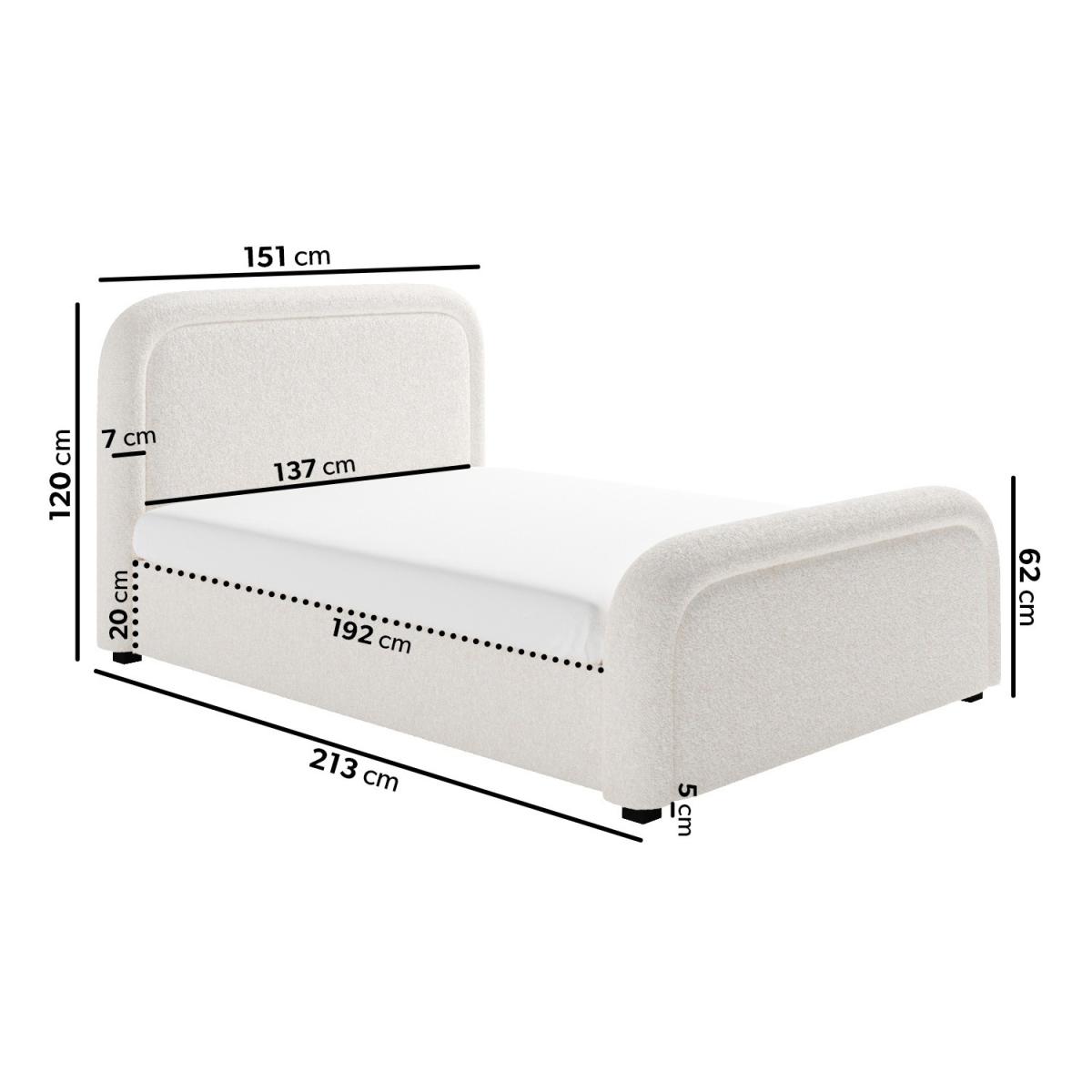 All about me Make a statement with our stylish Naomi ottoman bed frame. The curved silhouette and thick padded headboard and footboard adds a retro style to any bedroom. It's space-saving, too, as the entire space beneath is storage. It features a solid base to protect items from dust and a gas-lift mechanism for easy access. It's sprung-slatted for ultimate comfort and fits a UK standard double mattress. Need to know Packaging dimensions: Box 1: W157 x D125 x H15 cm / Box 2:W198 x D33 x H16 cm / Box 3:W155 x D75 x H11 cm Packaging weights: Box 1: 32kg / Box 2: 21kg / Box 3: 21kg Product dimensions:W151 x D213 x H120 cm Inner storage dimensions: W137 x D192 x H20 cm Bed mattress size: Standard UK Double (4ft 6”) Product weight: 68kg Colour: Off-white Finish: Upholstered Material: Multi-layer board, solid wood combination, metal, foam and fabric Bed base: Sprung-slatted Assembly required: Yes Mattress included: No