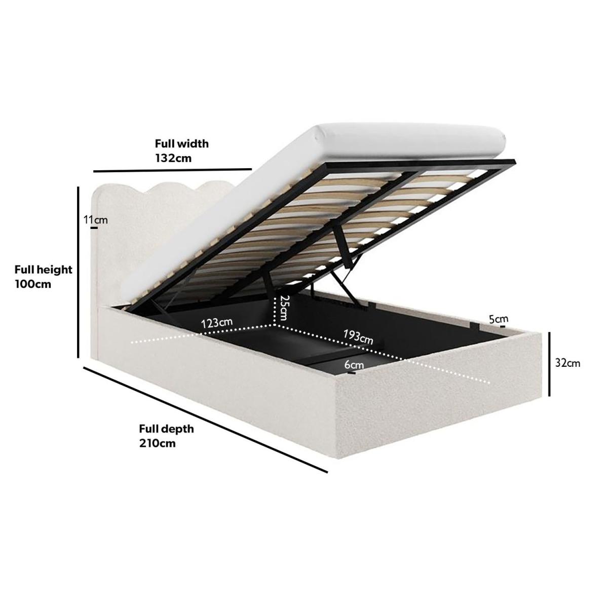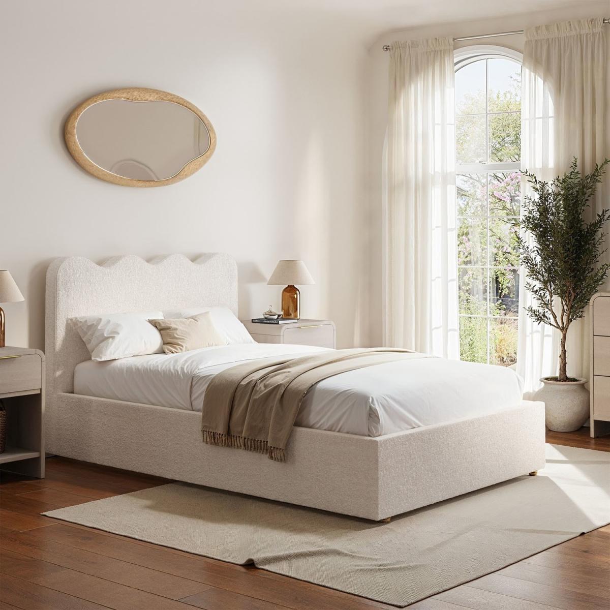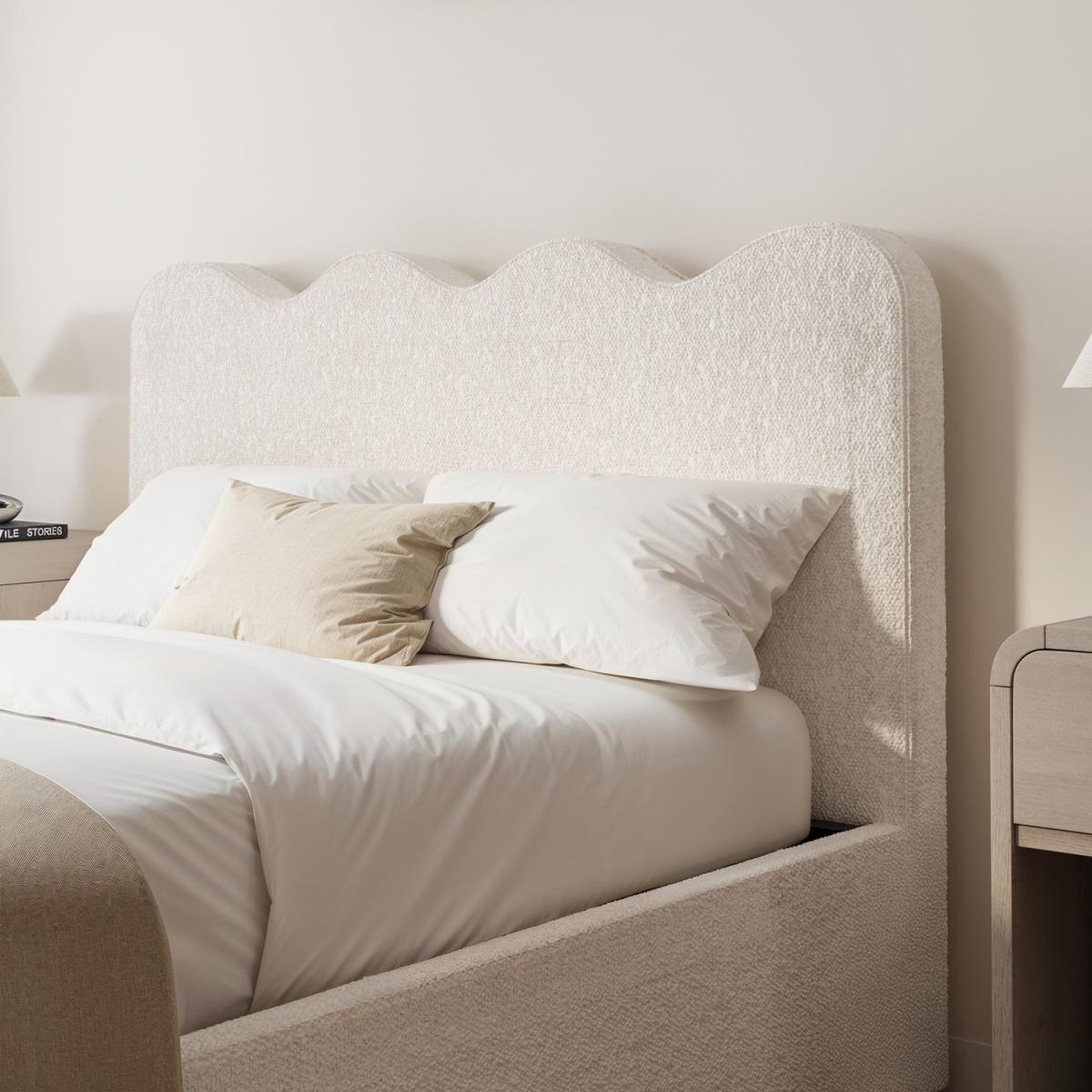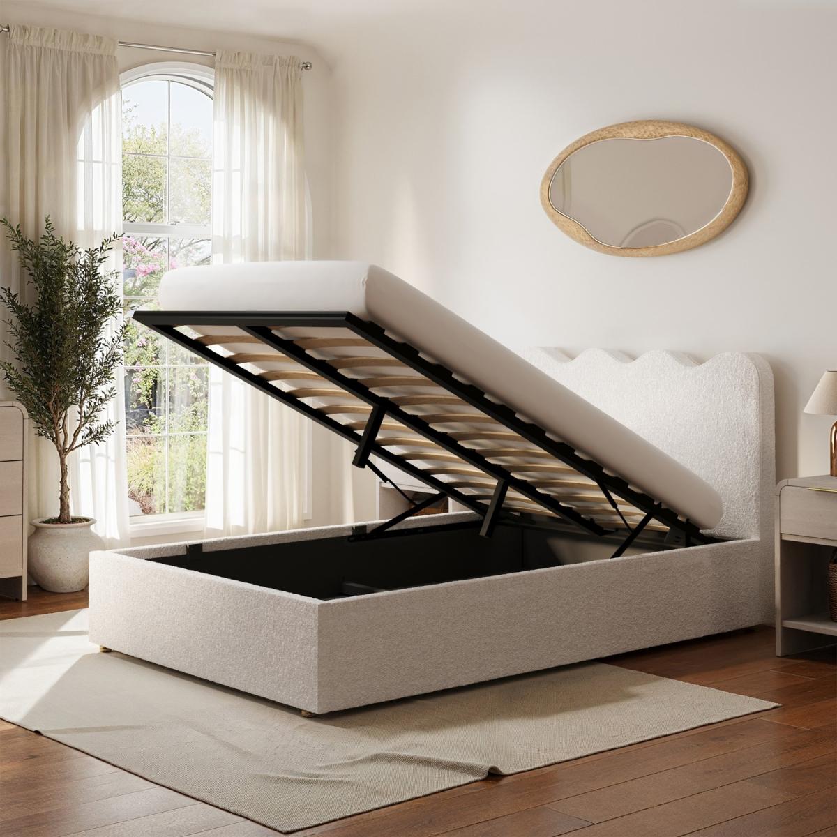 The contemporary scalloped headboard adds a playful yet sophisticated touch to any bedroom, blending effortlessly with modern and minimalist interiors. Upholstered in a soft, boucle fabric, this ottoman bed frame delivers a cosy and inviting feel, perfect for a restful night’s sleep. Ideal for smaller bedrooms or guest spaces, the sleek design ensures it complements your room without overwhelming it. Crafted with a sturdy frame and high-quality materials, this ottoman bed frame guarantees long-lasting support and style for years to come.